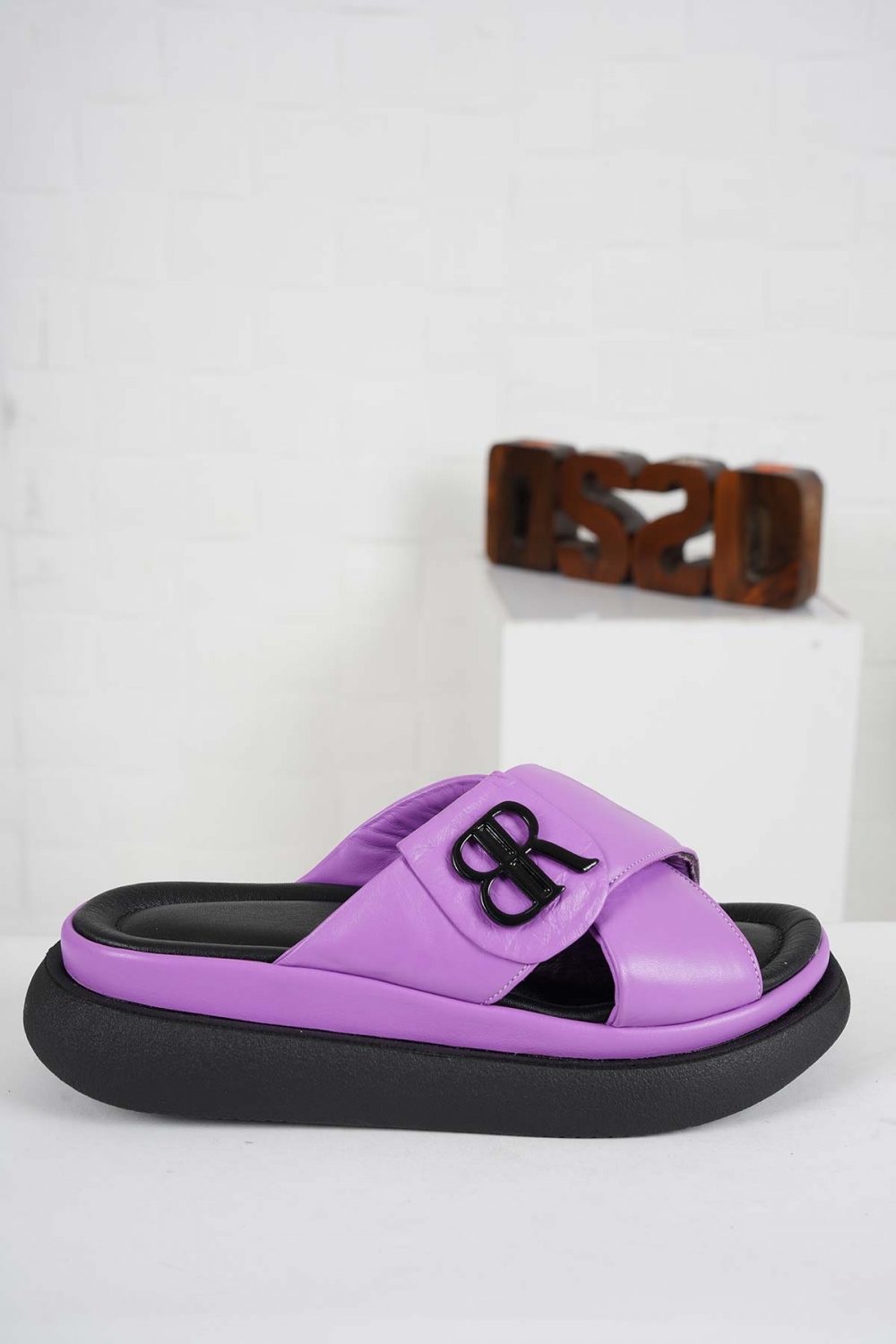 Hakiki Deri Mor Kadın Komfort Terlik 241229605