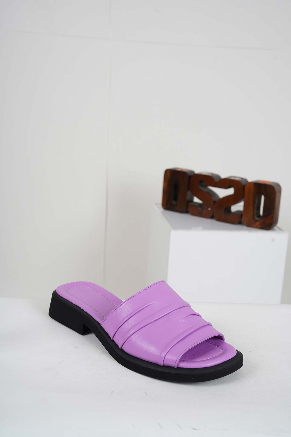 Hakiki Deri Mor Kadın Topuklu Terlik 241229615