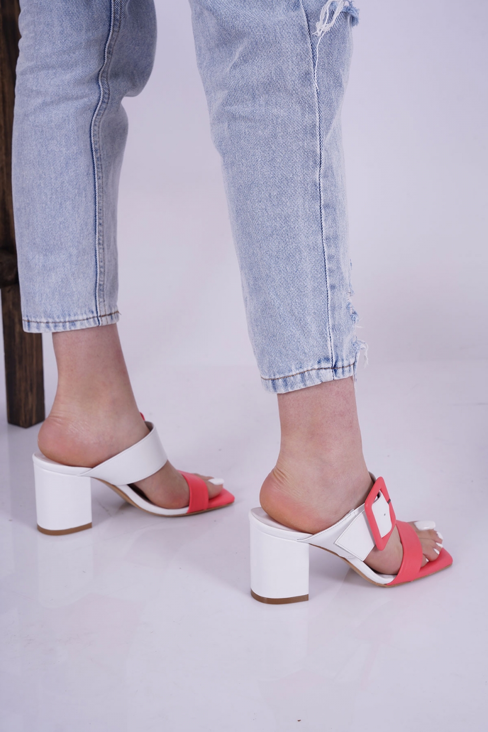 Hakiki Deri Nar Çiçeği-Beyaz Kadın Topuklu Terlik 221127606