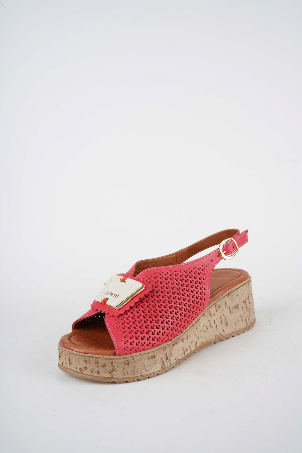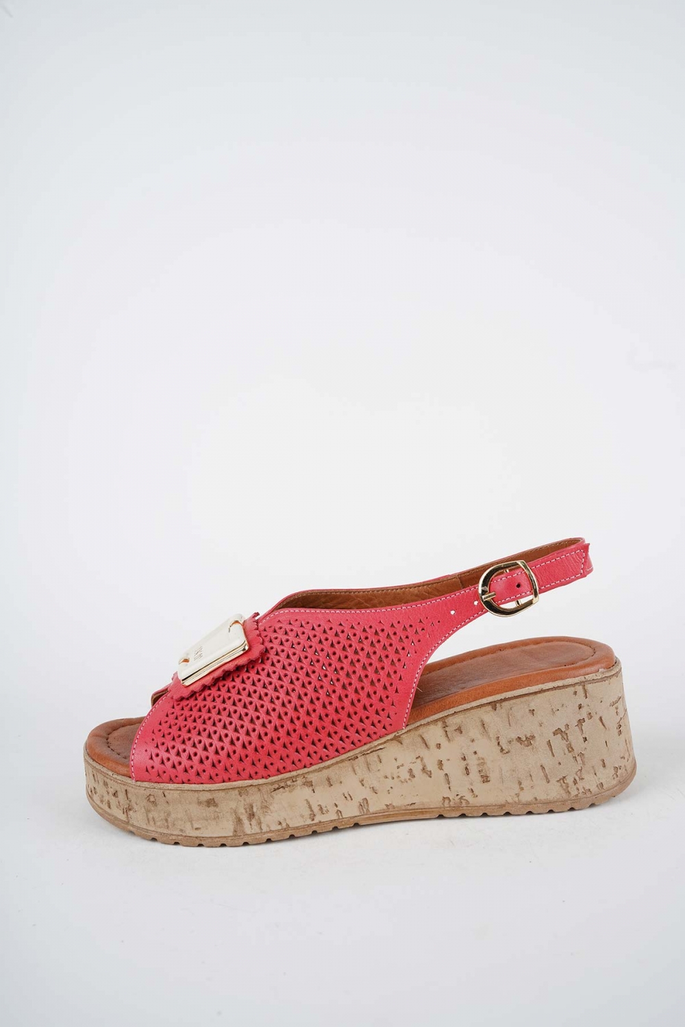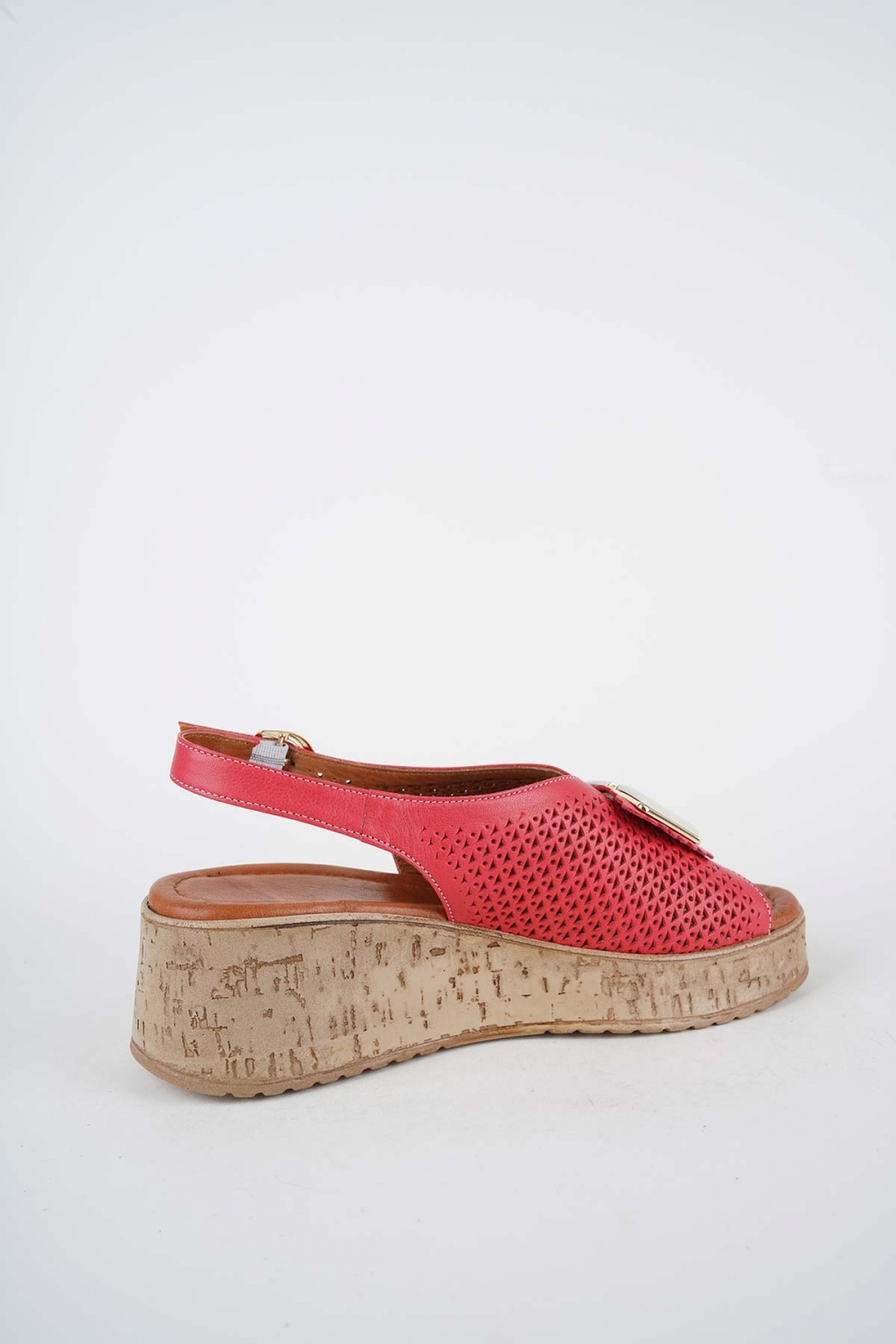 Hakiki Deri Nar Çiçeği Kadın Dolgu Topuklu Sandalet 261186506