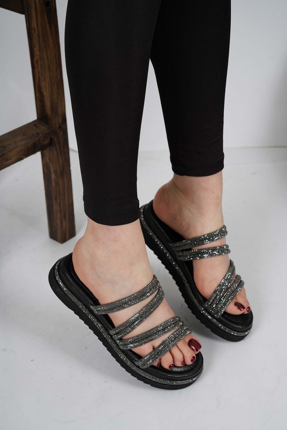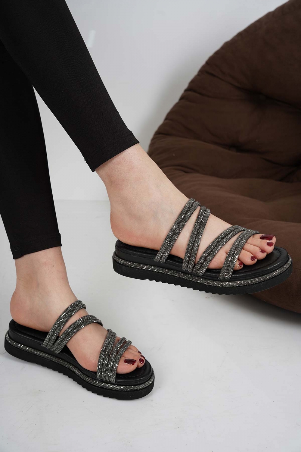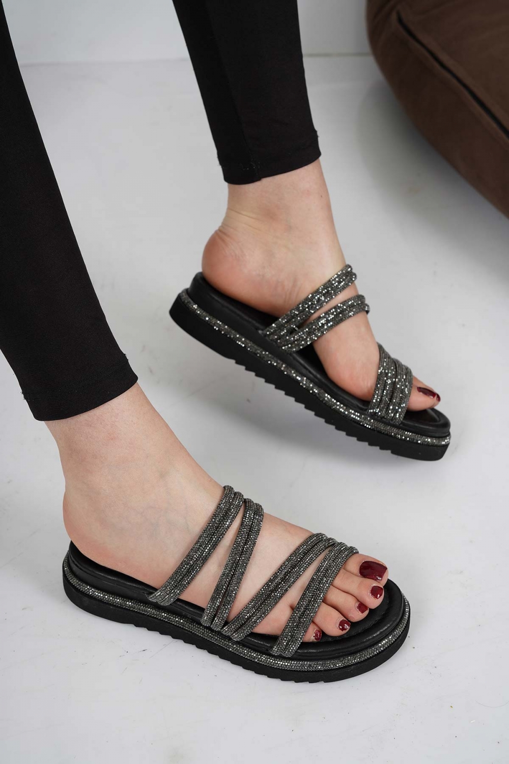 Hakiki Deri Nikel Jan Jan Taş Kadın Taşlı Terlik 231114608