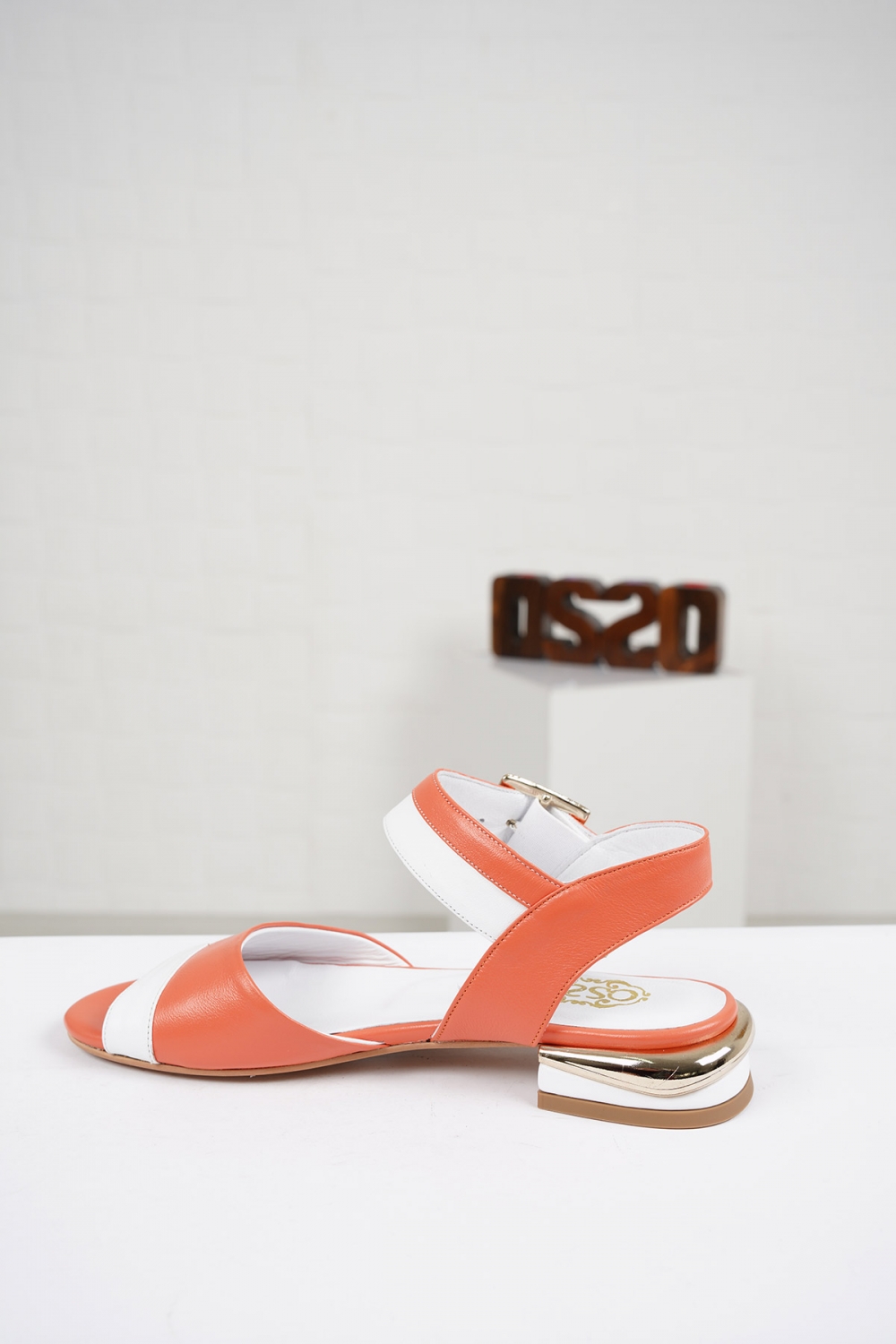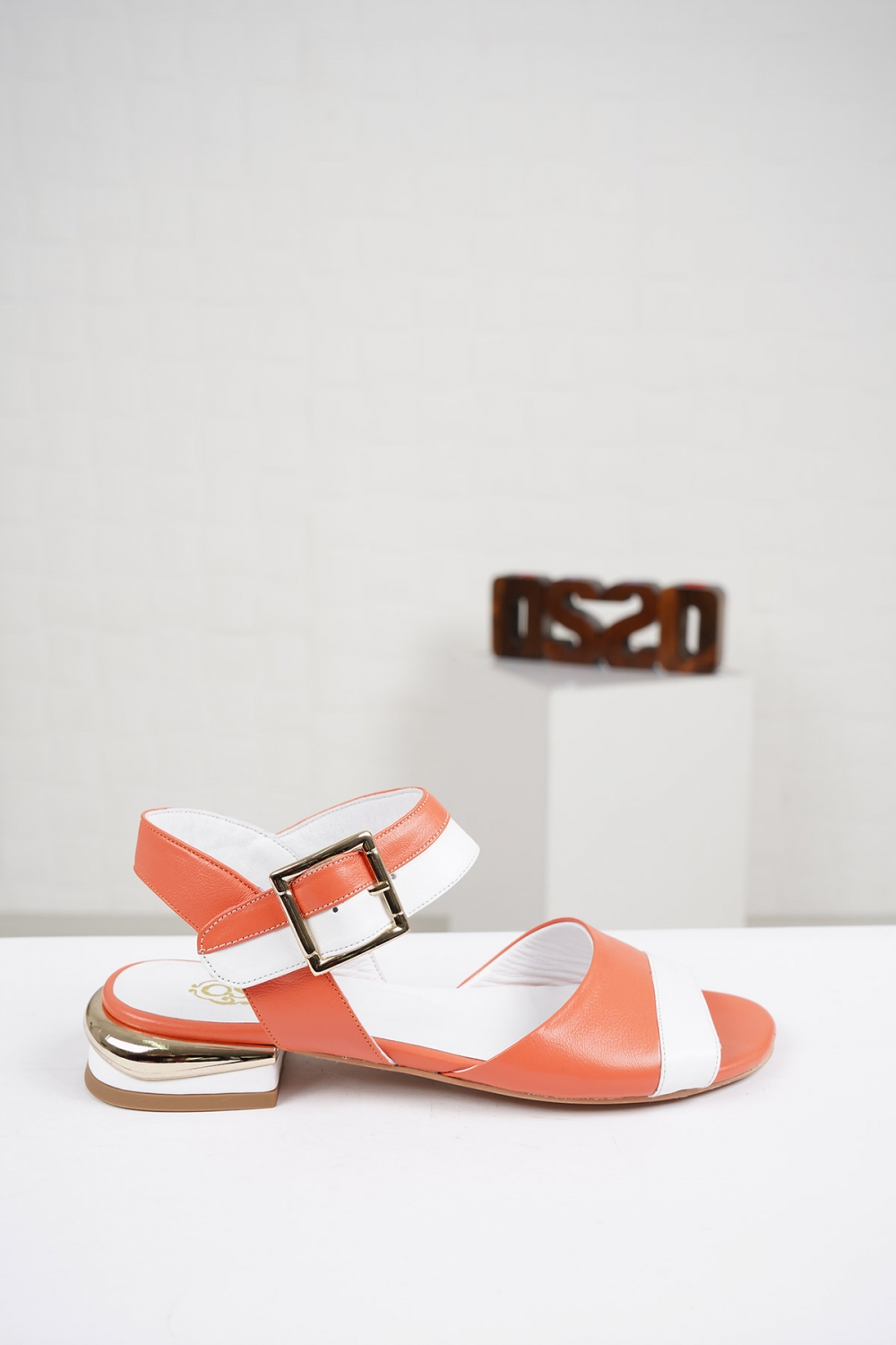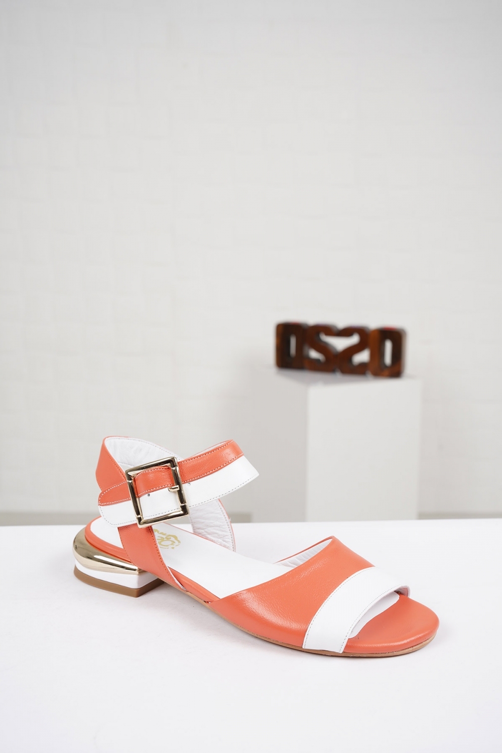 Hakiki Deri Oranj-Beyaz Kadın Düz Sandalet 221127517