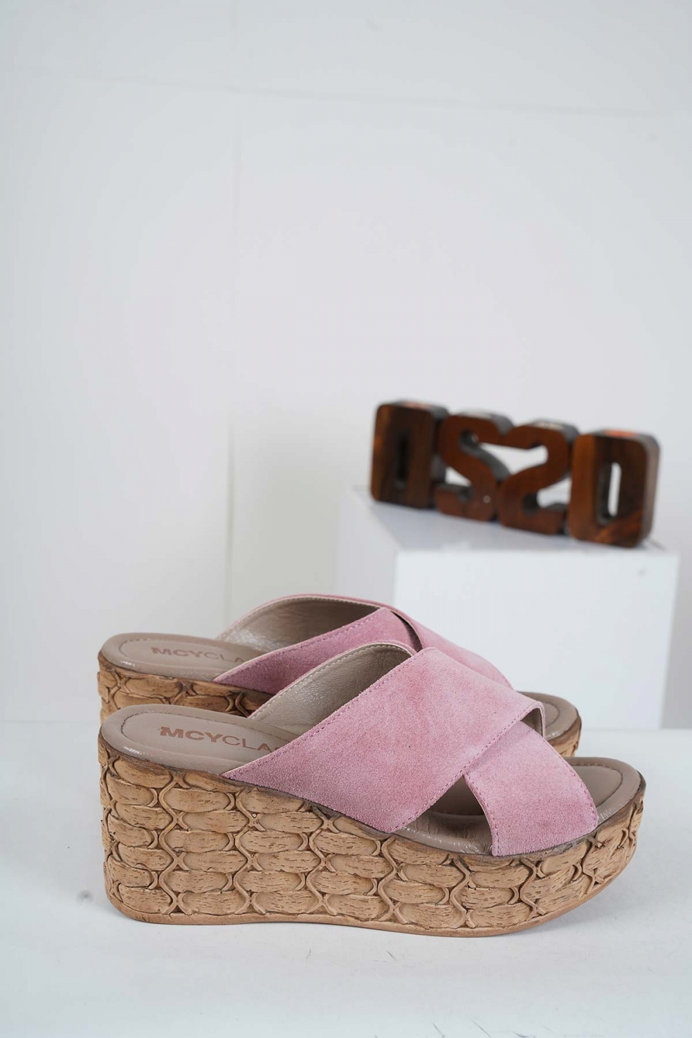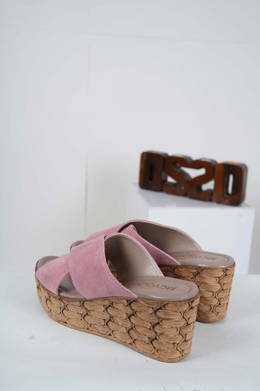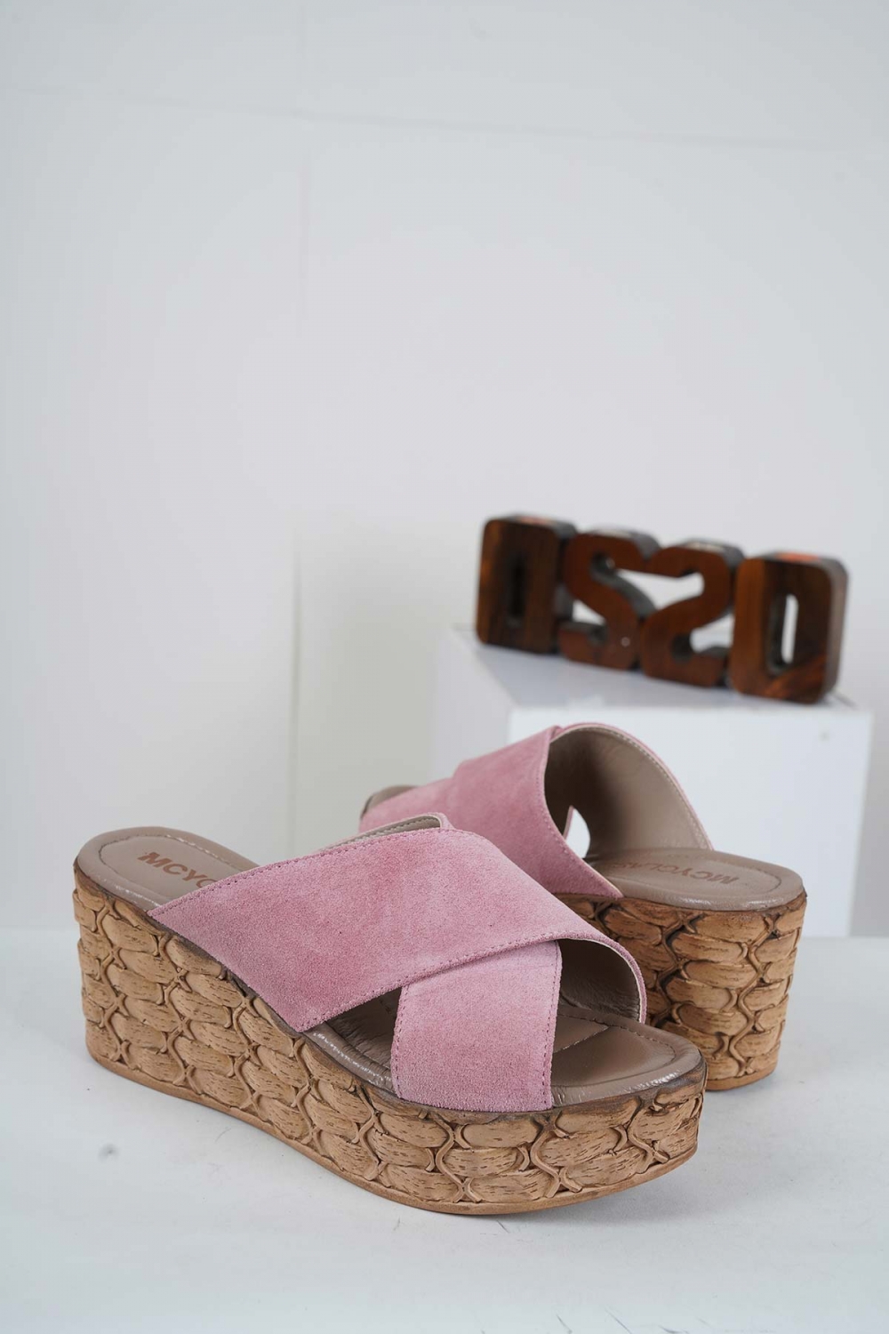 Hakiki Deri Pudra Kadın Dolgu Topuklu Terlik 261114602
