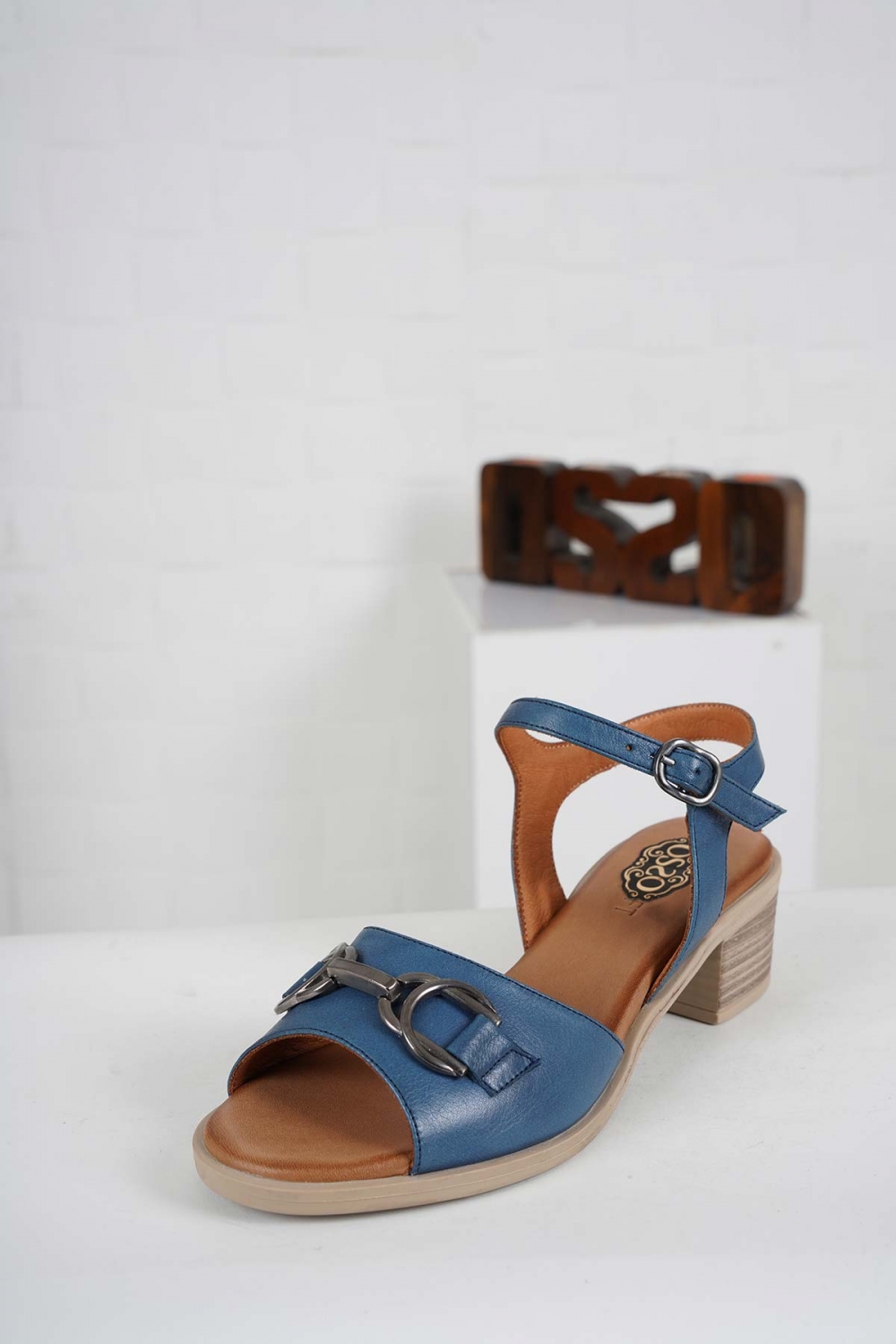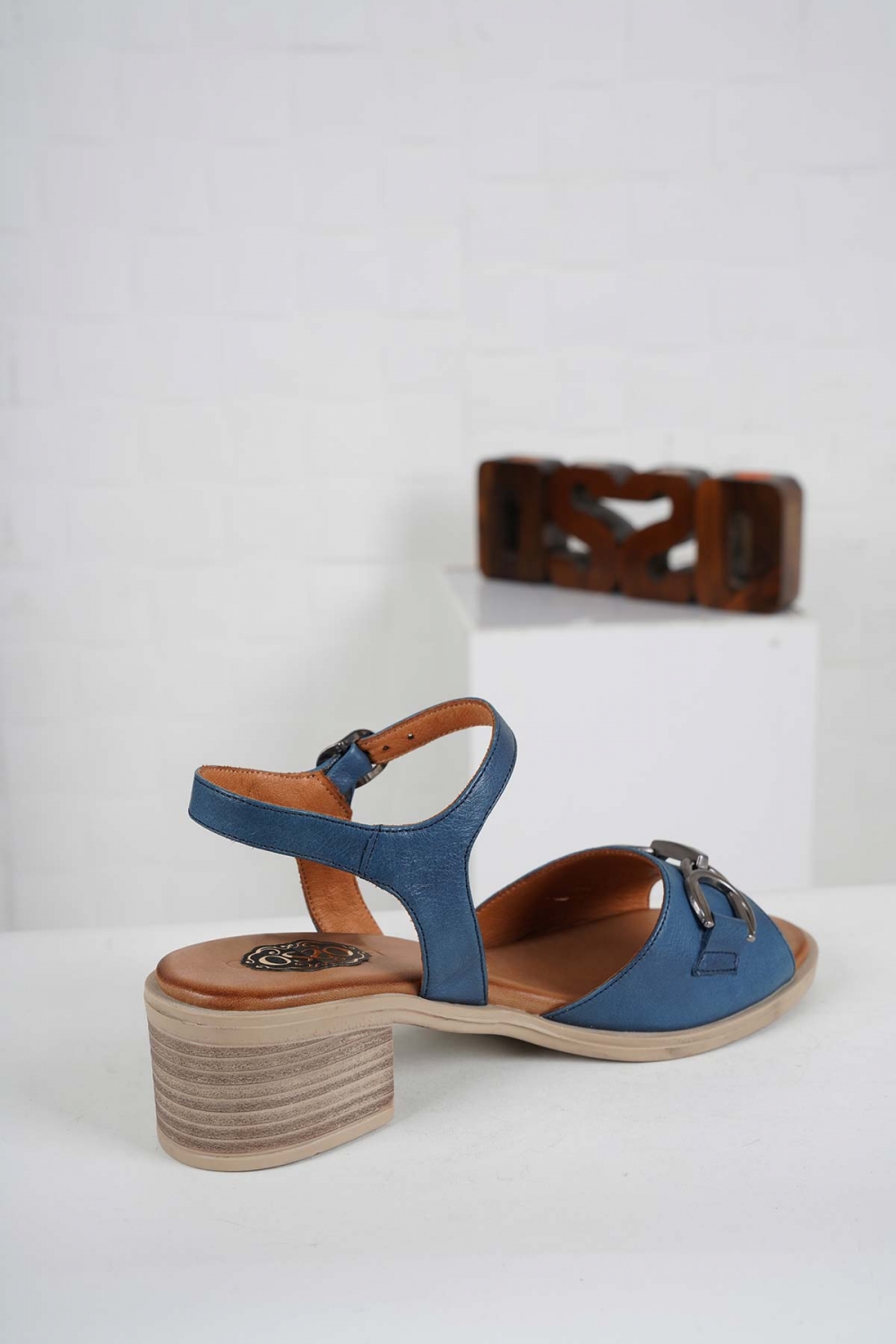 Hakiki Deri Petrol Mavi Kadın Topuklu Sandalet 241126505