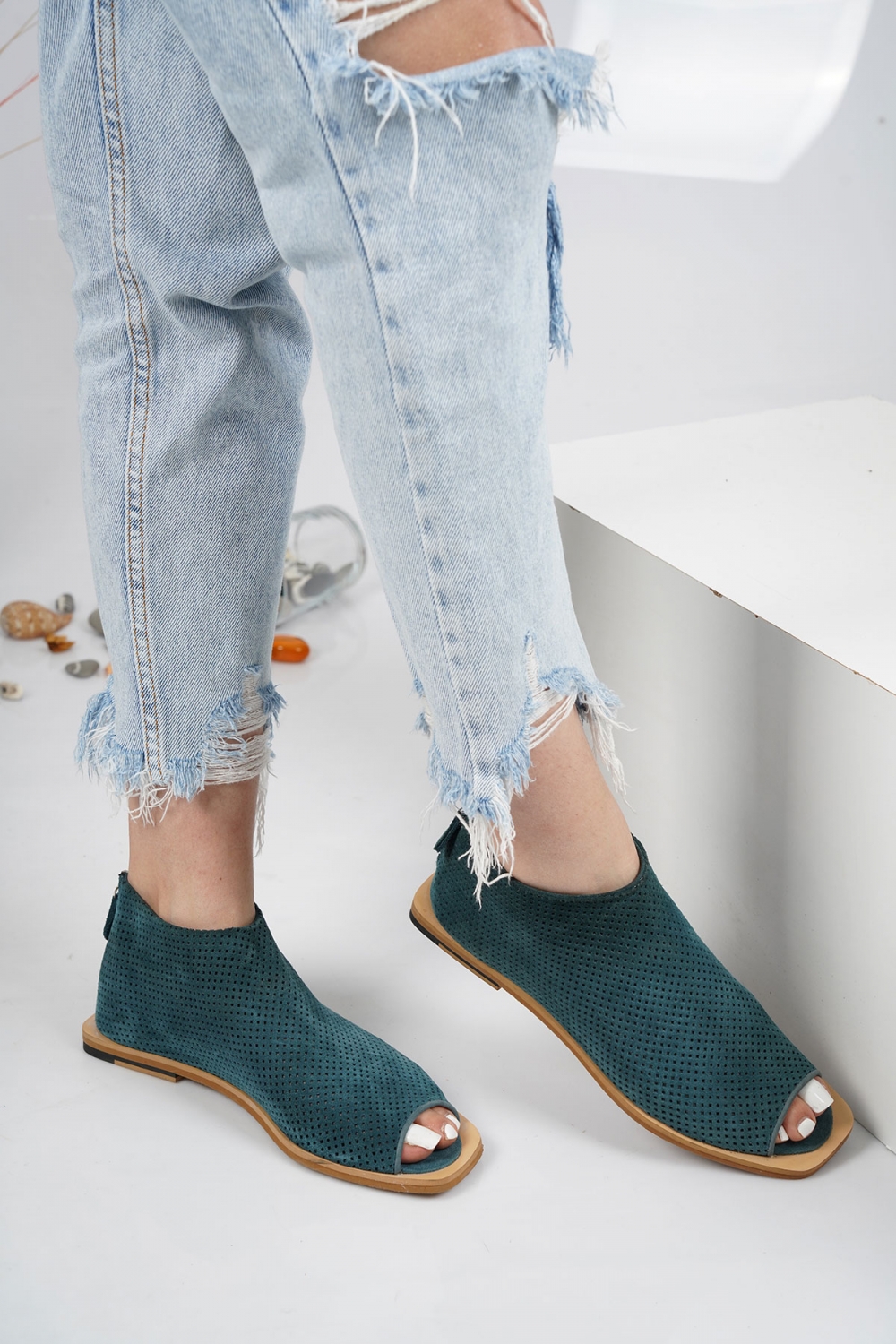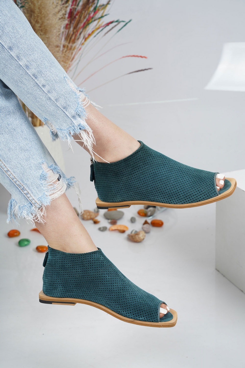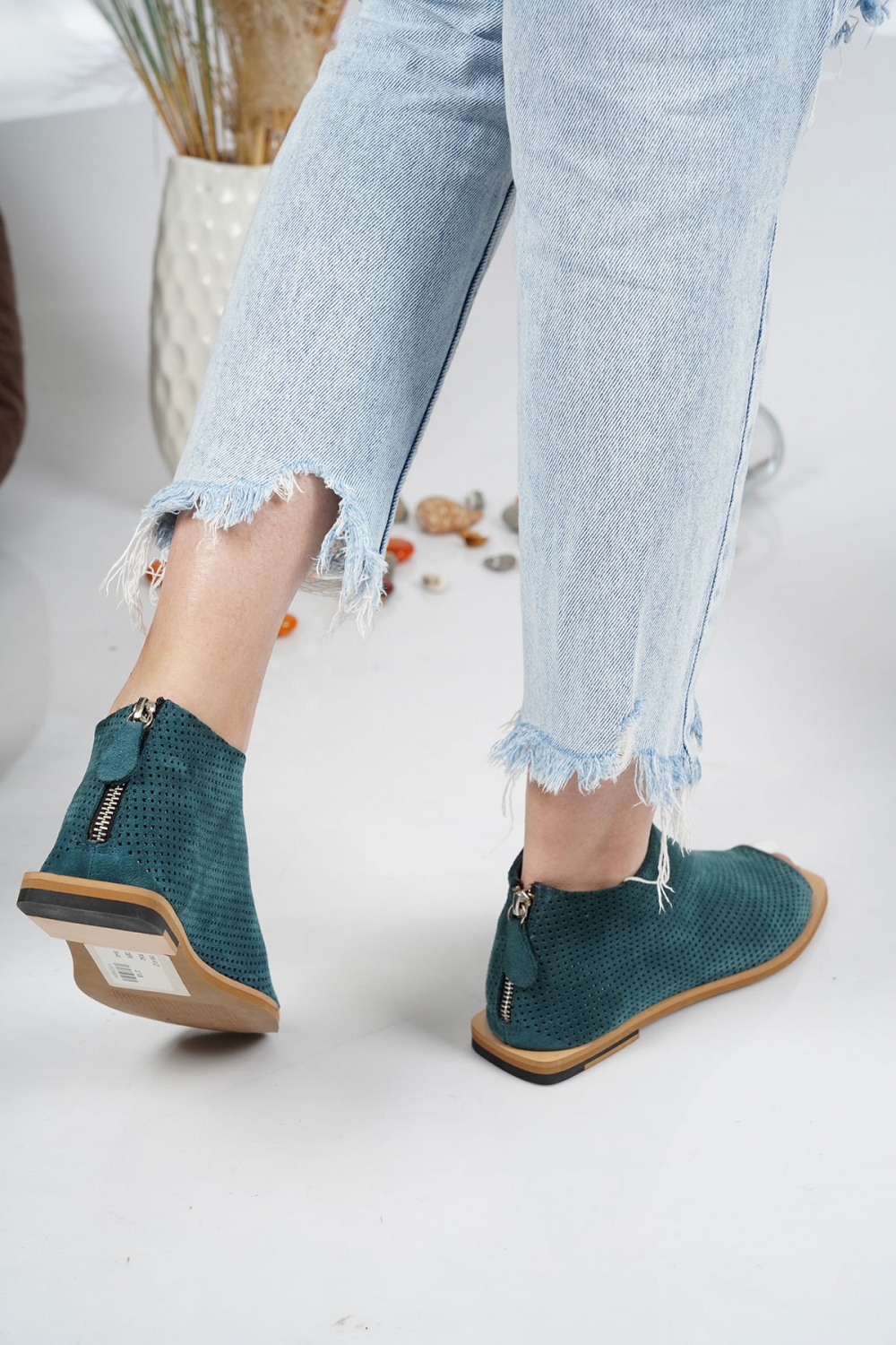 Hakiki Deri Petrol Mavisi Süet Kadın Burnu Açık Bot 221110201