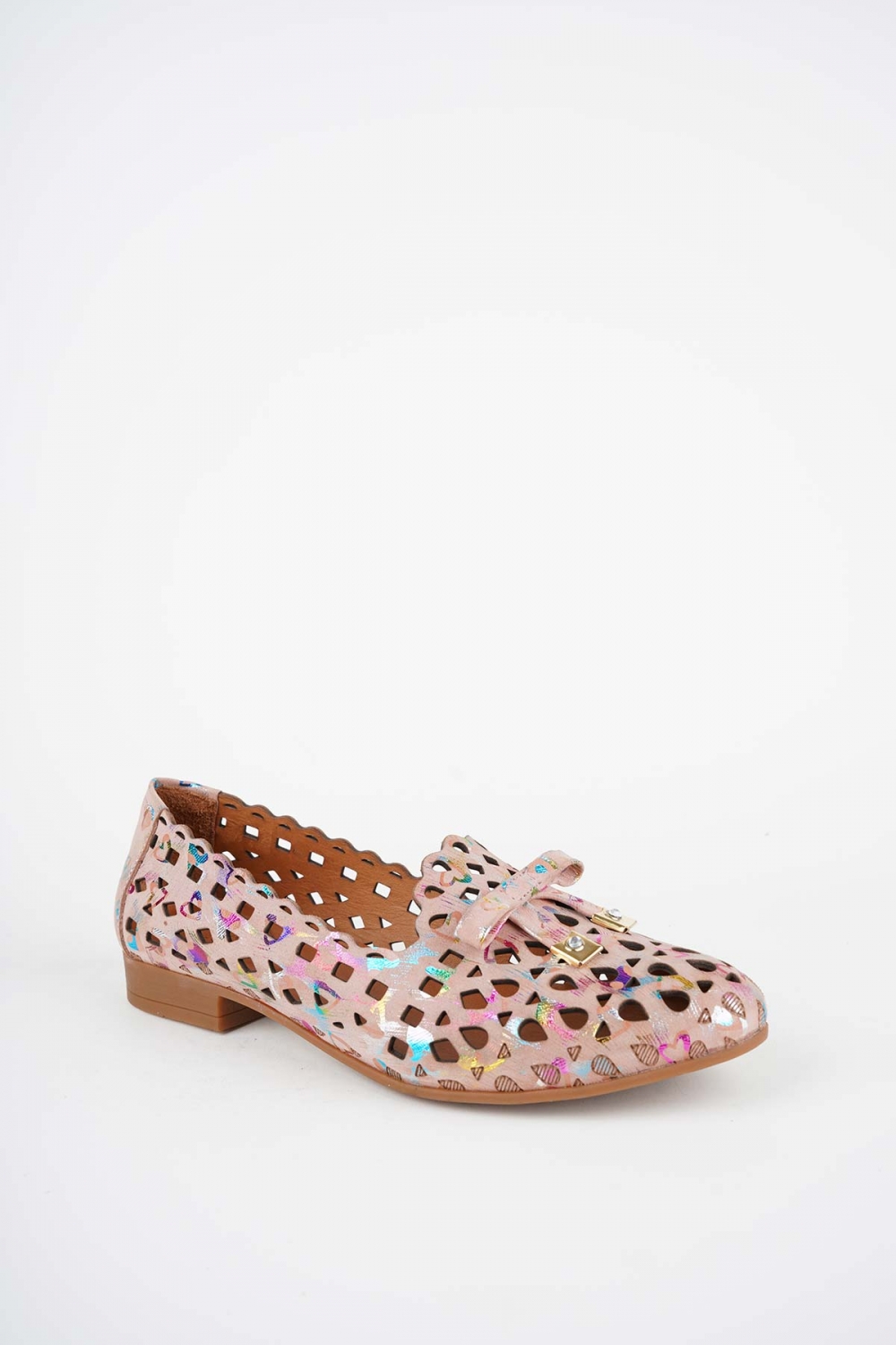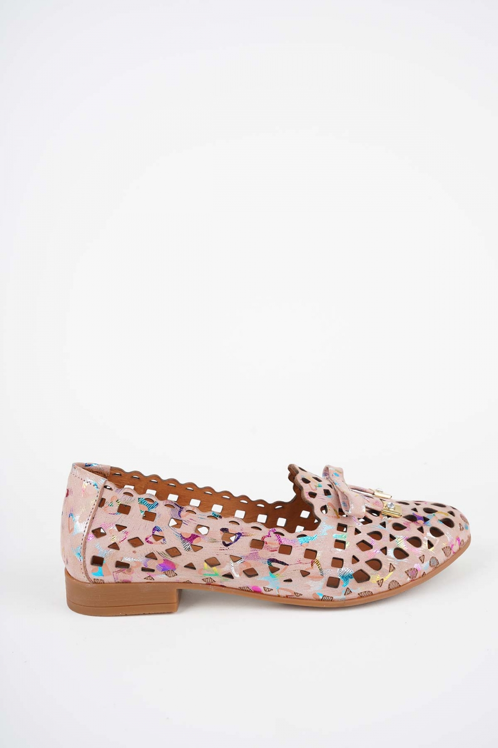 Hakiki Deri Pudra Baskı Kadın Babet Ayakkabı 261214103