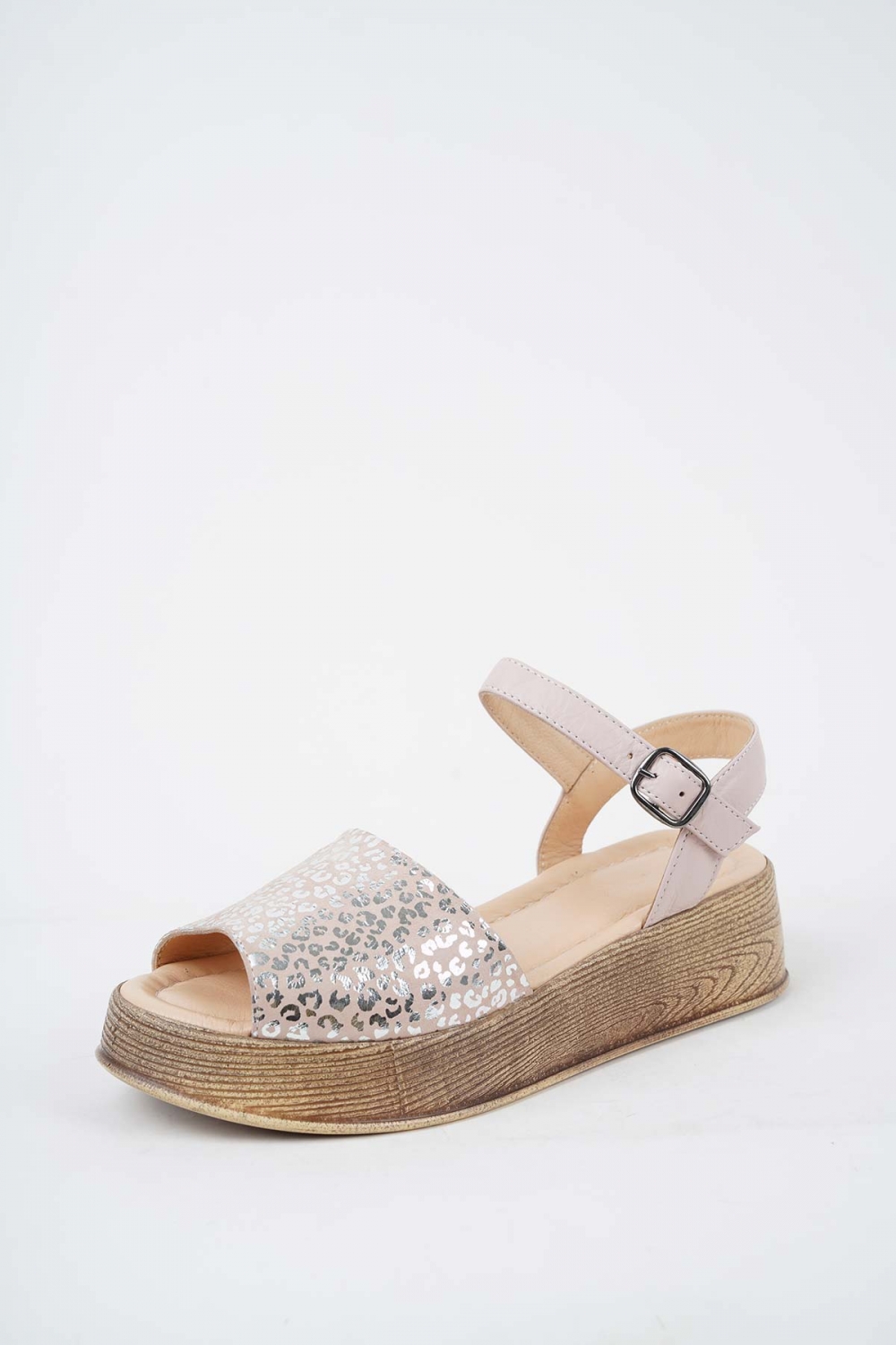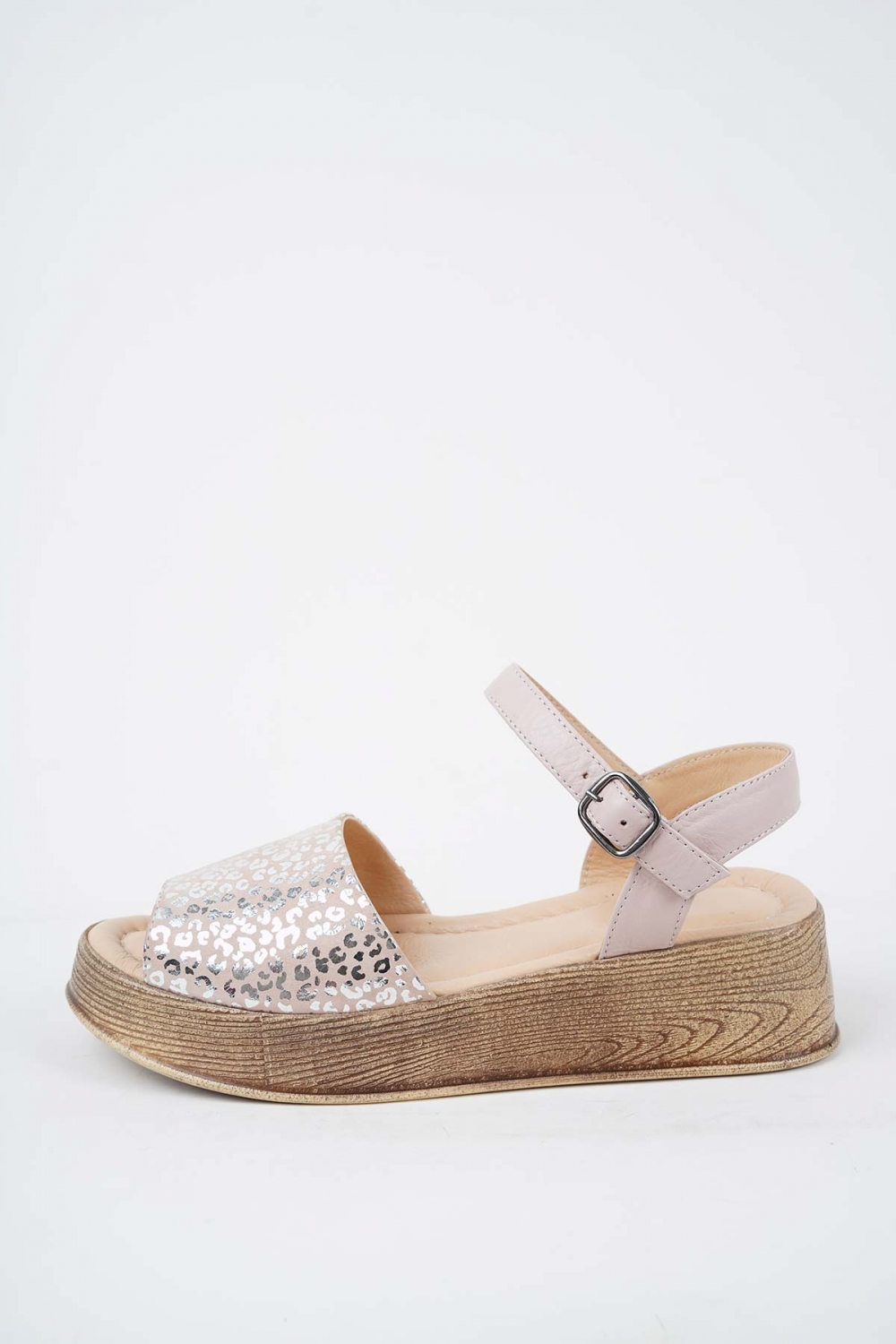 Hakiki Deri Pudra Baskılı Kadın Dolgu Topuk Sandalet 251189502