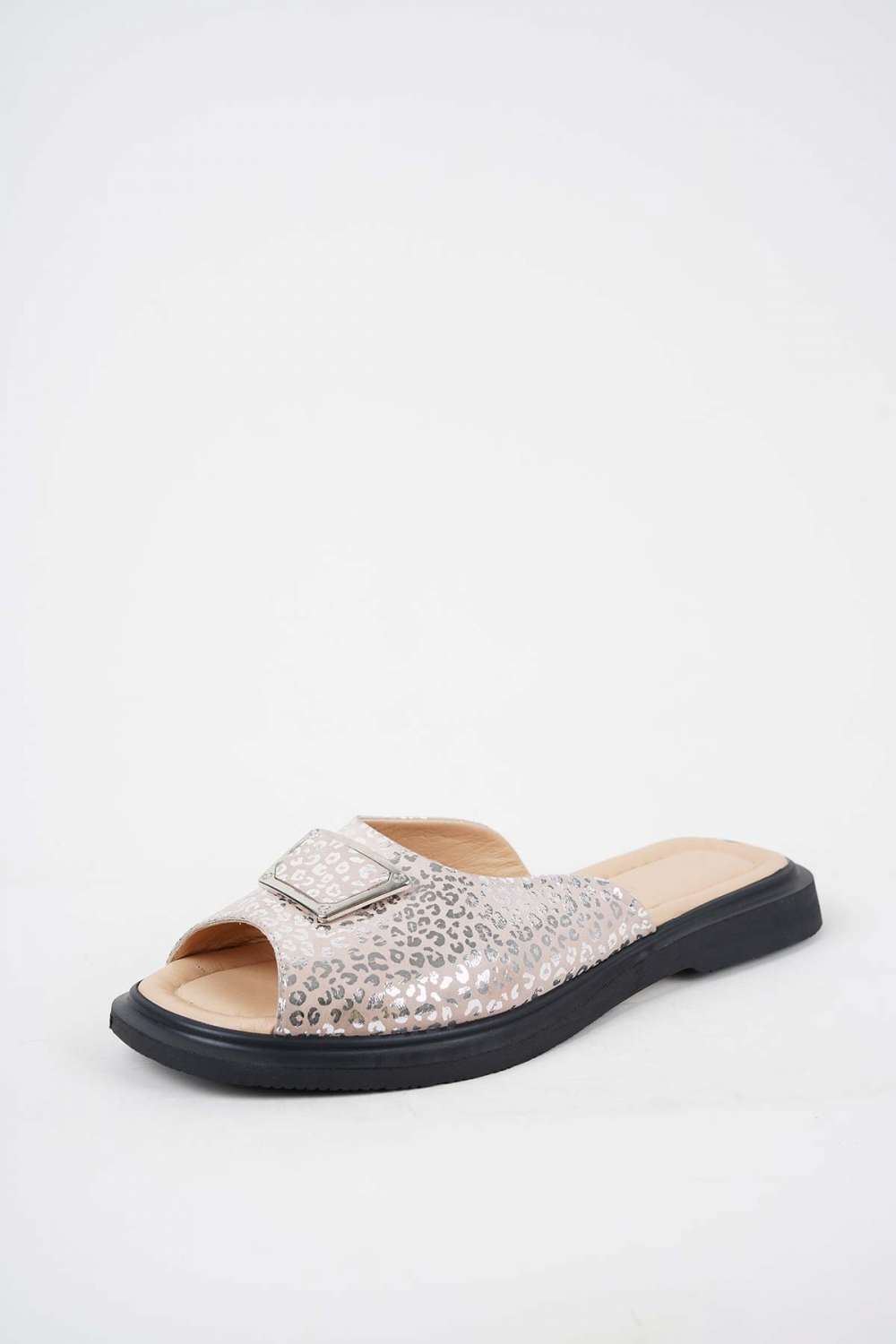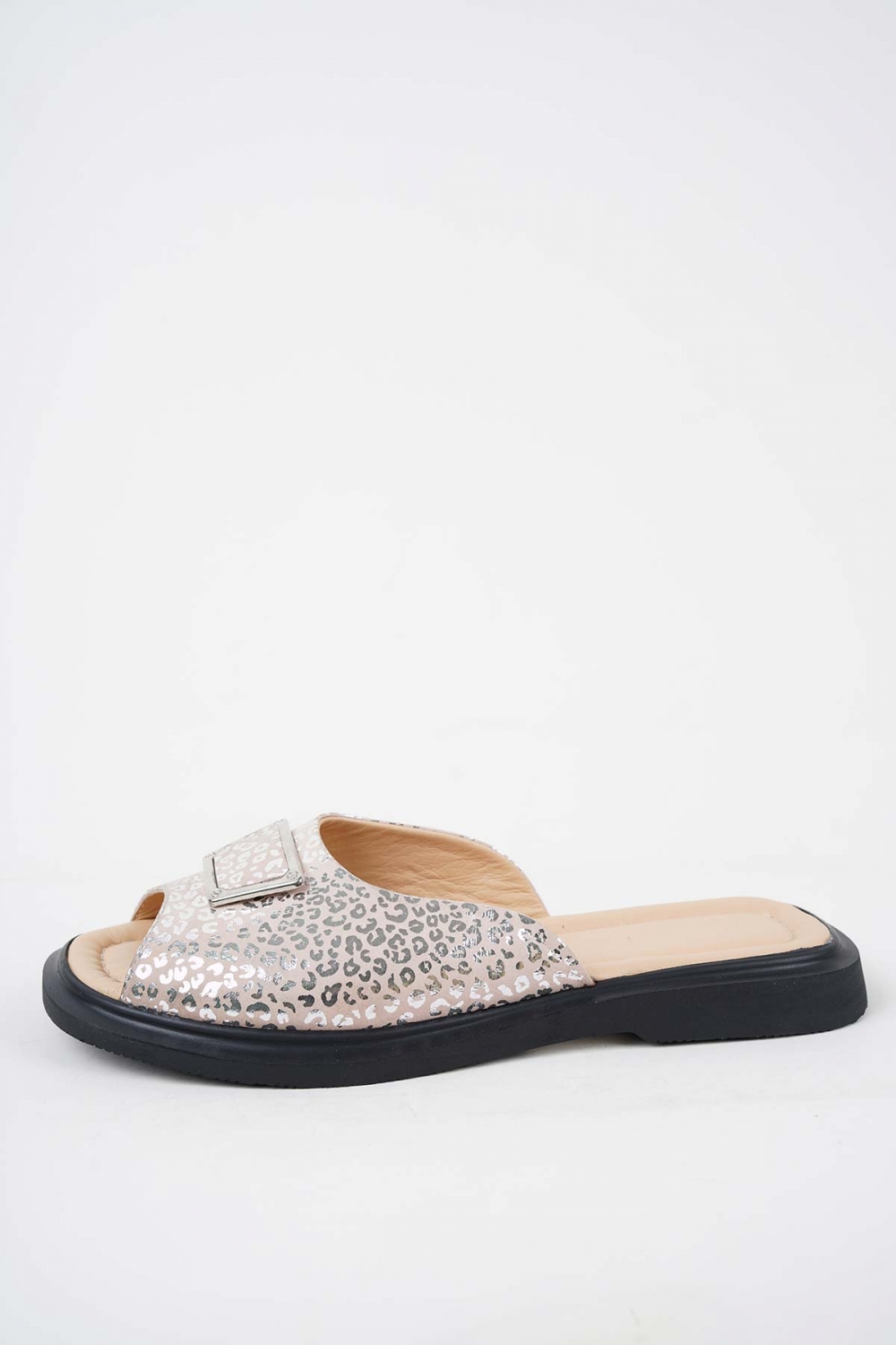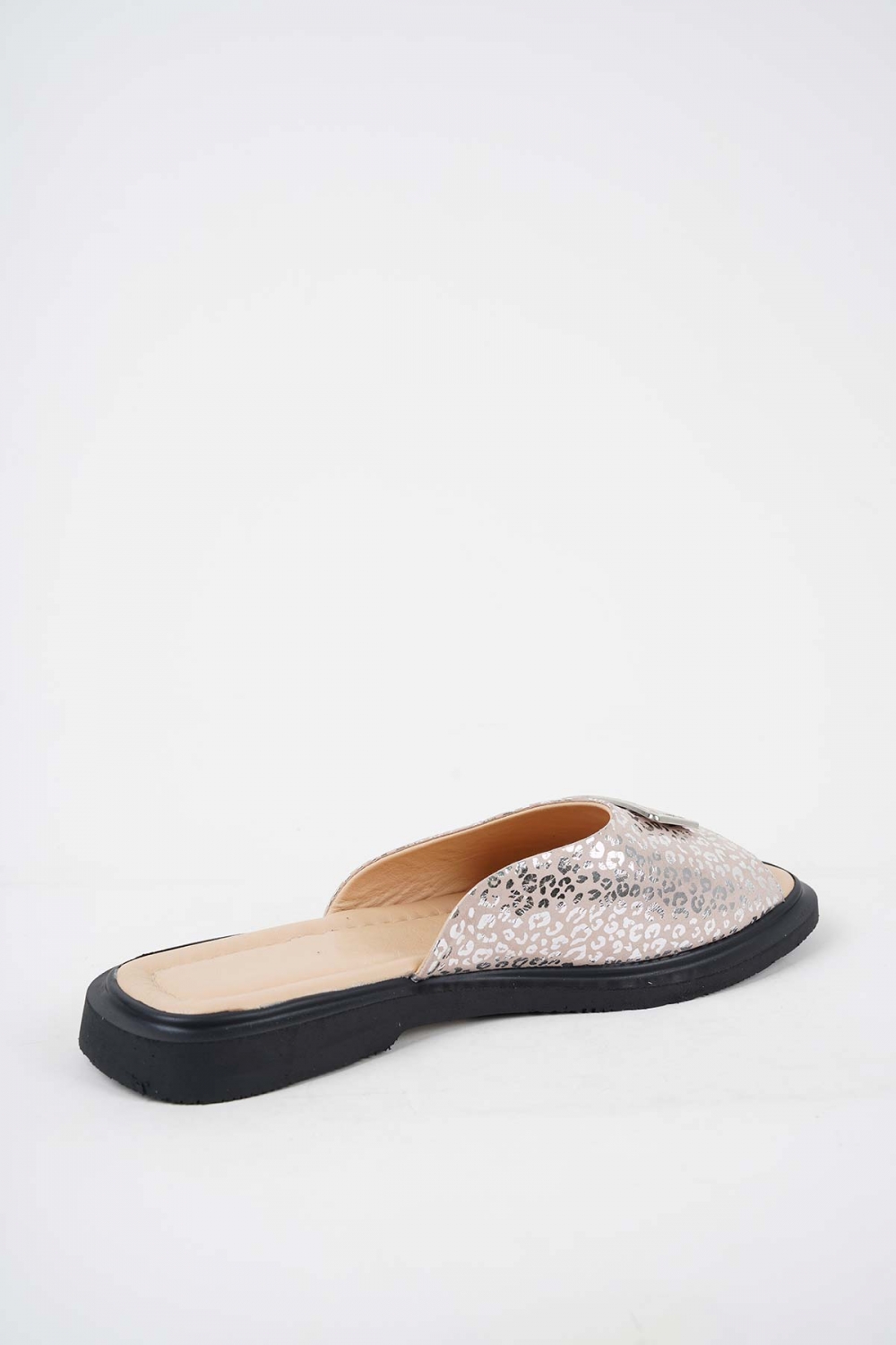 Hakiki Deri Pudra Baskılı Kadın Düz Terlik 251189604