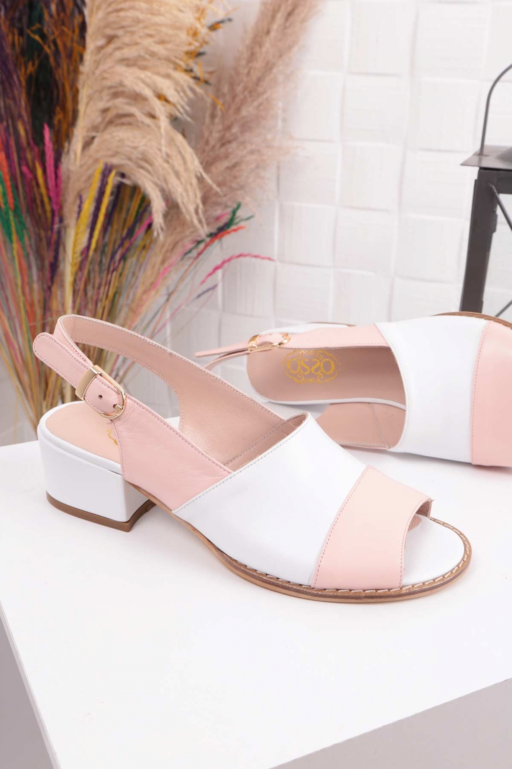 Hakiki Deri Pudra-Beyaz Kadın Burun Kapalı Sandalet 211127511