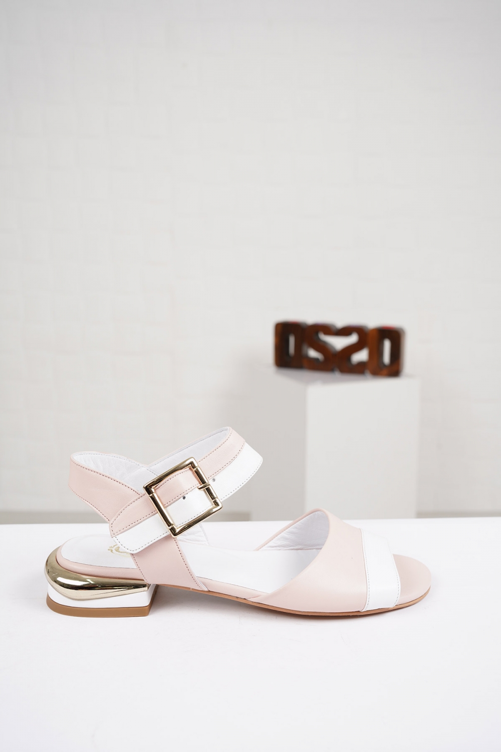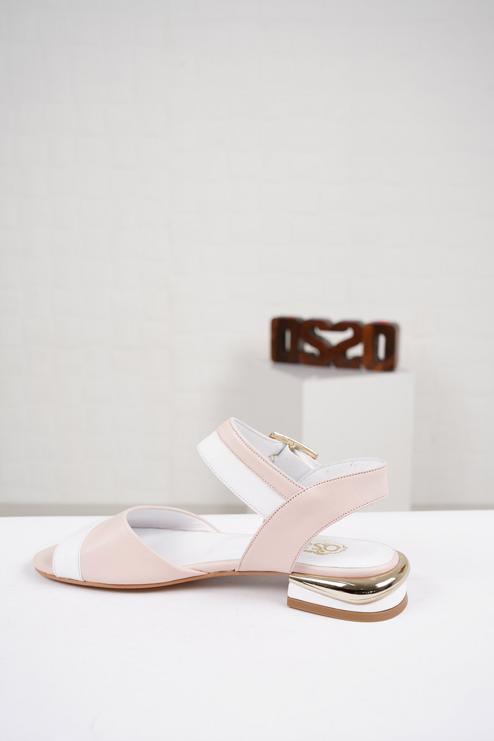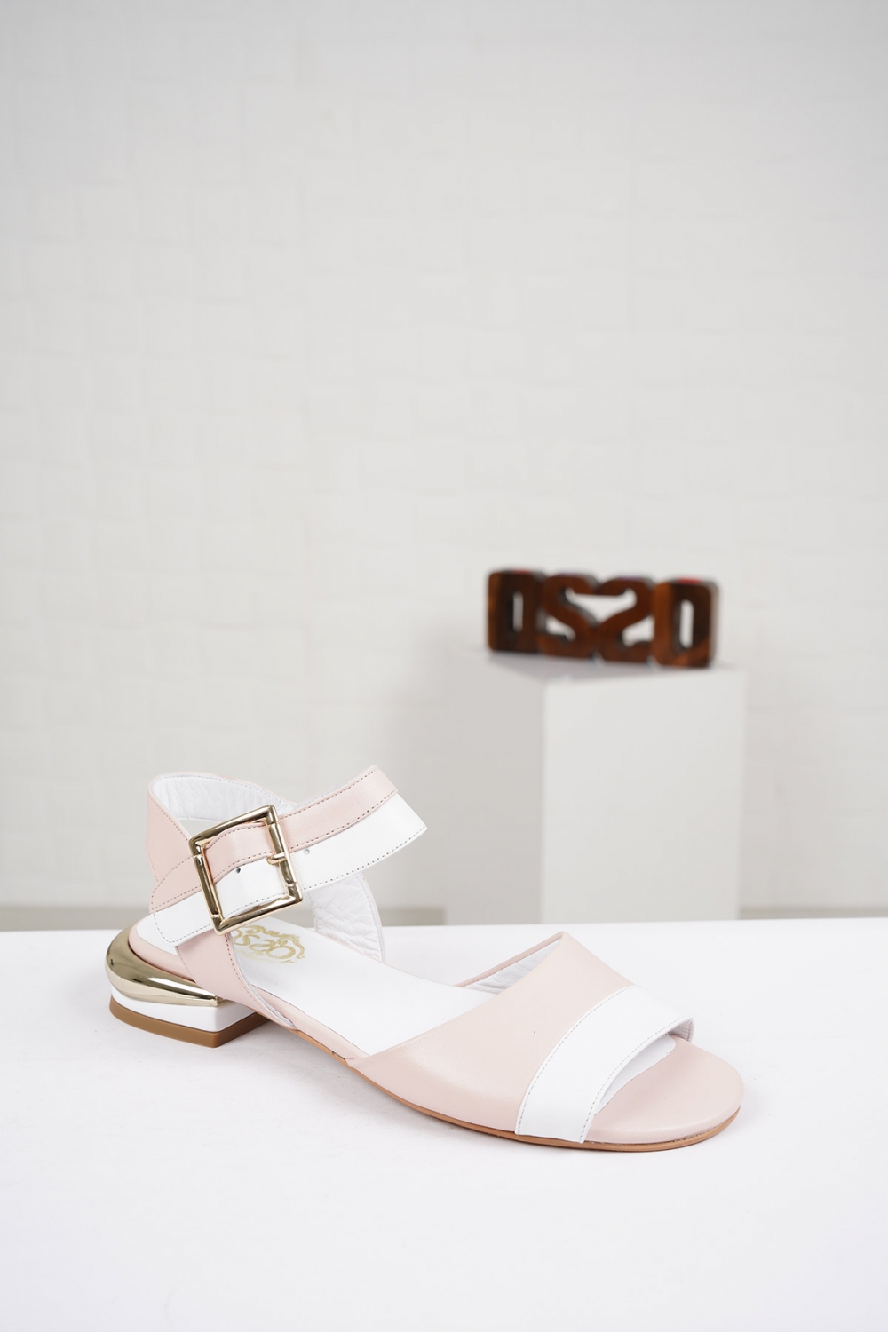 Hakiki Deri Pudra-Beyaz Kadın Düz Sandalet 221127517