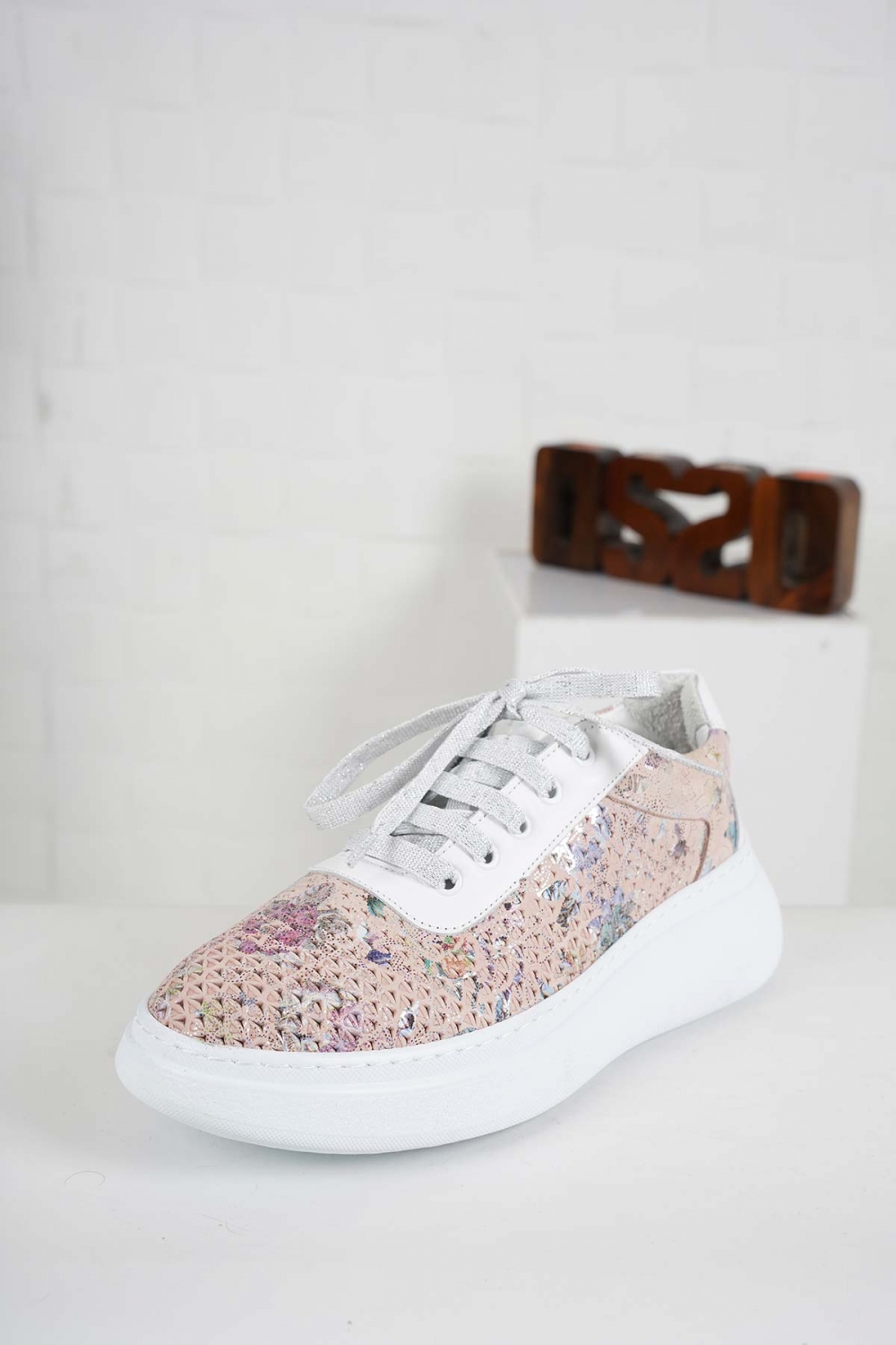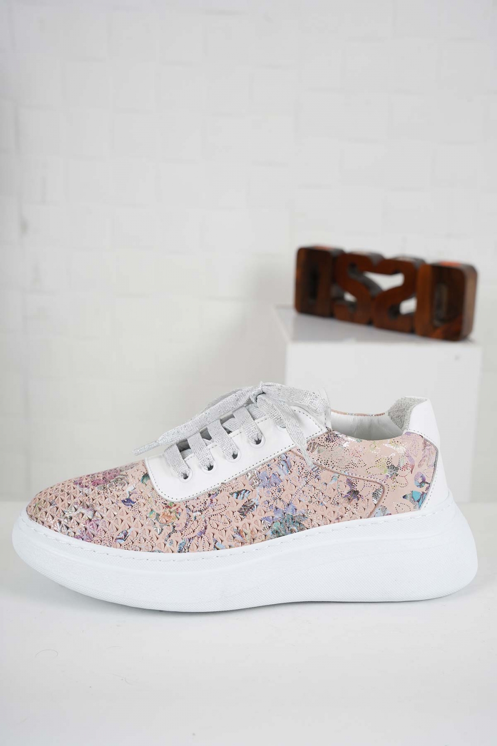 Hakiki Deri Pudra Çiçekli-Beyaz Kadın Casual Ayakkabı 241186100