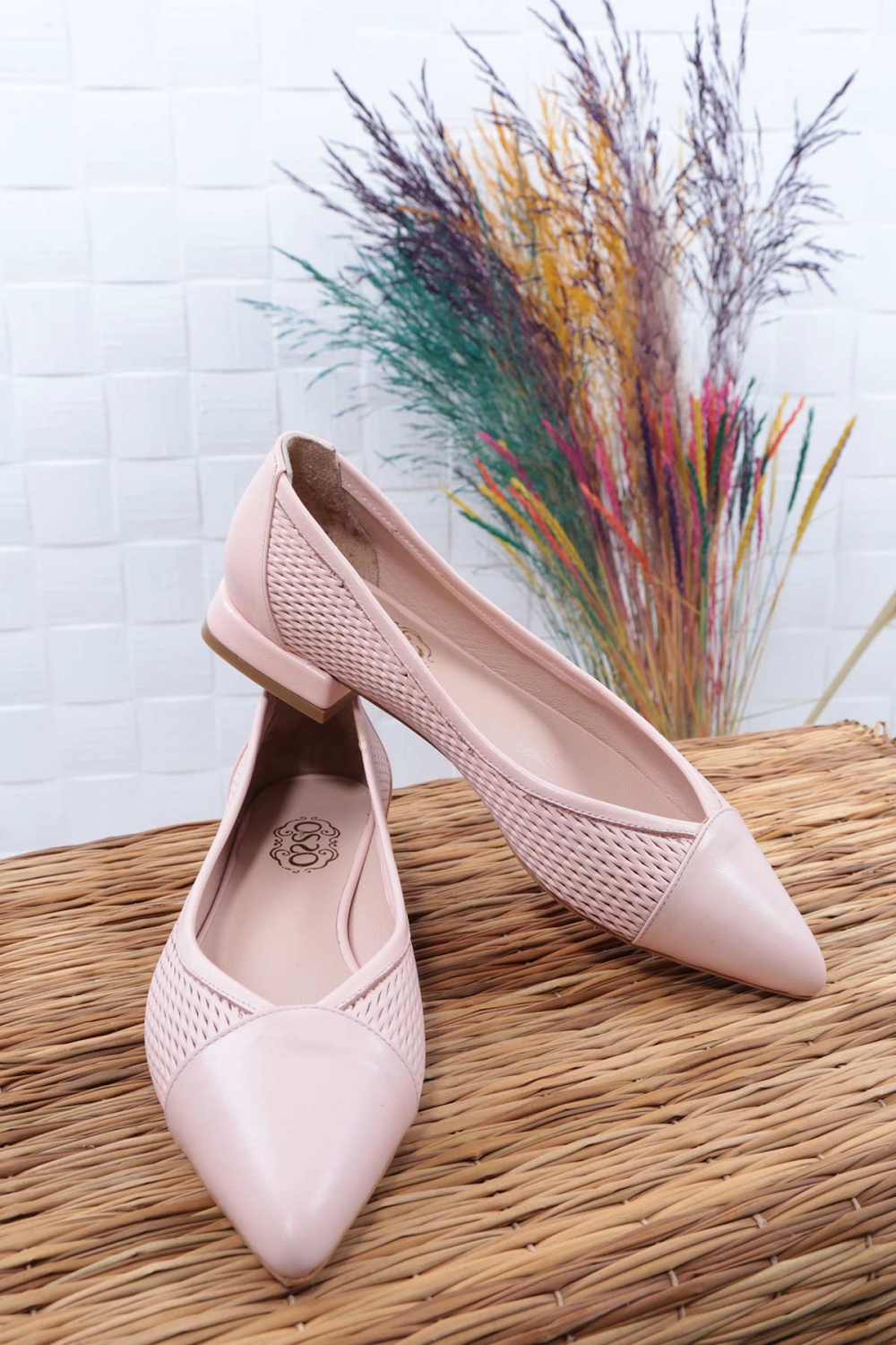 Hakiki Deri Pudra Baskılı Kadın Babet Ayakkabı 261214113