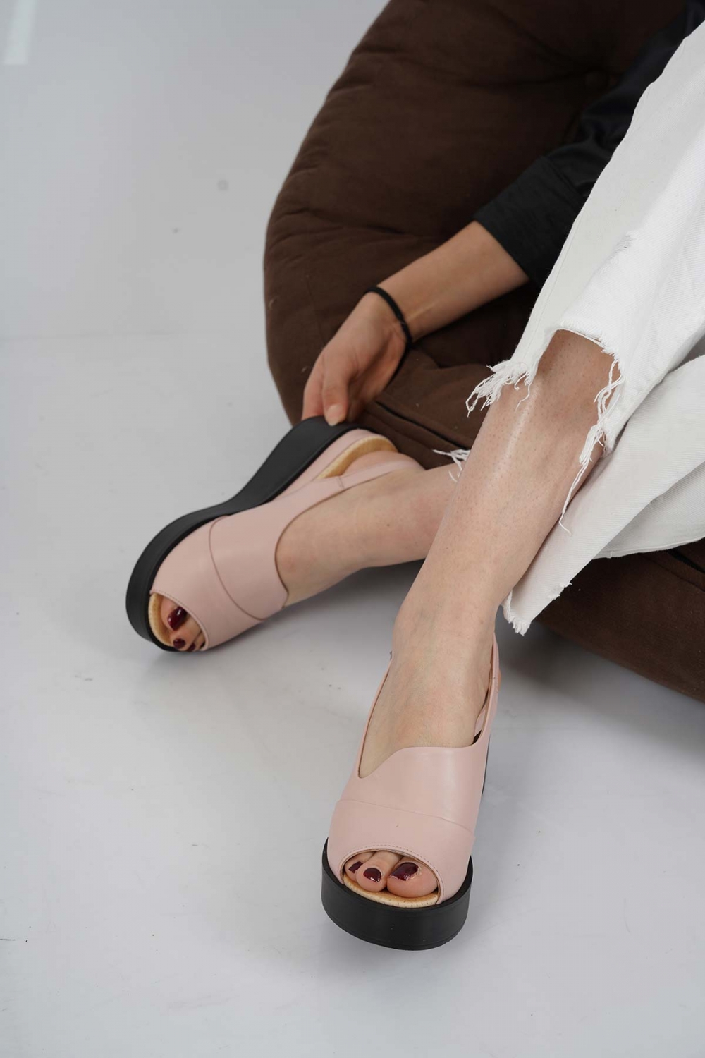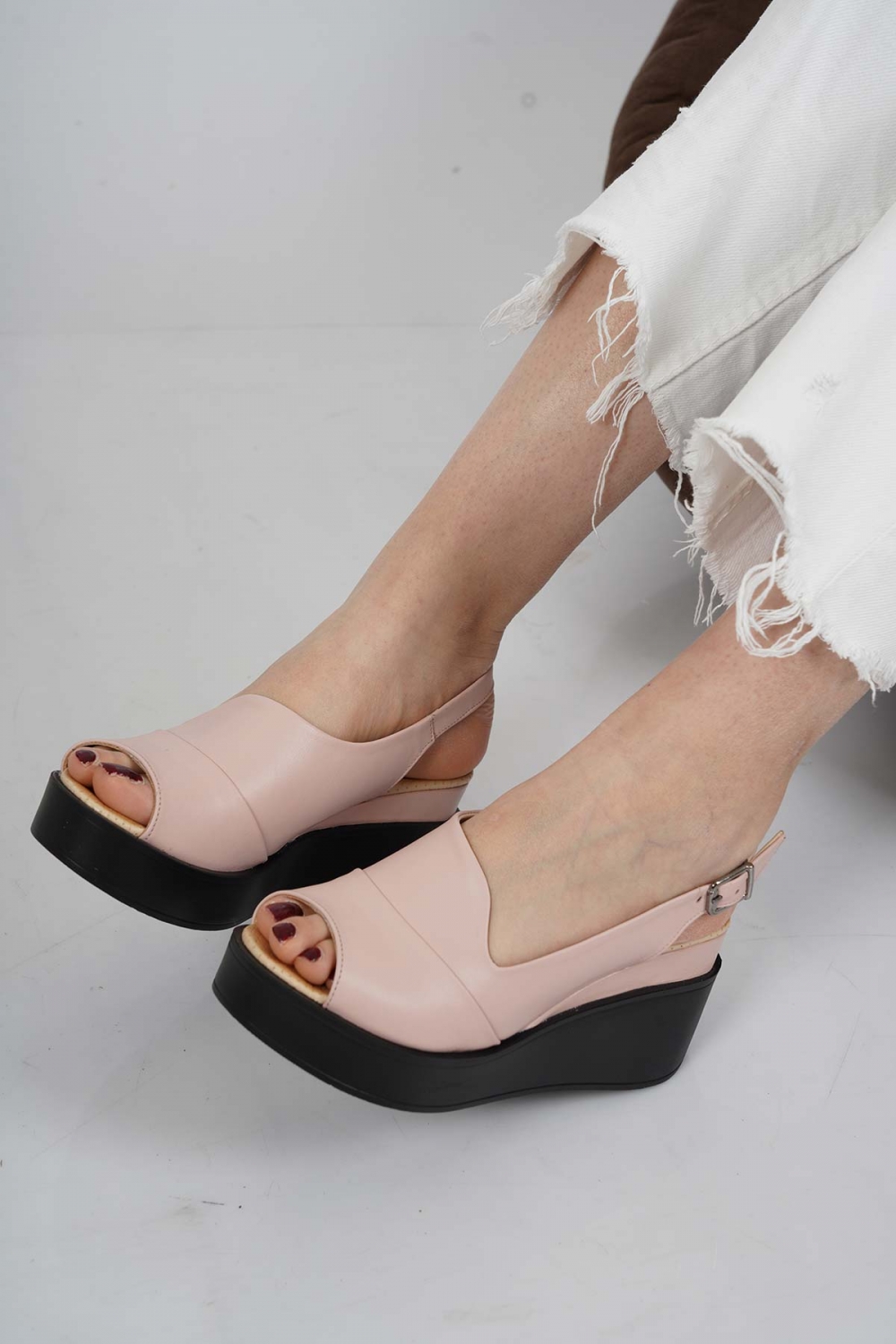 Hakiki Deri Pudra Kadın Dolgu Topuk Sandalet 221229502