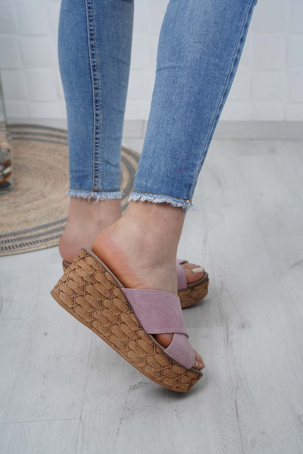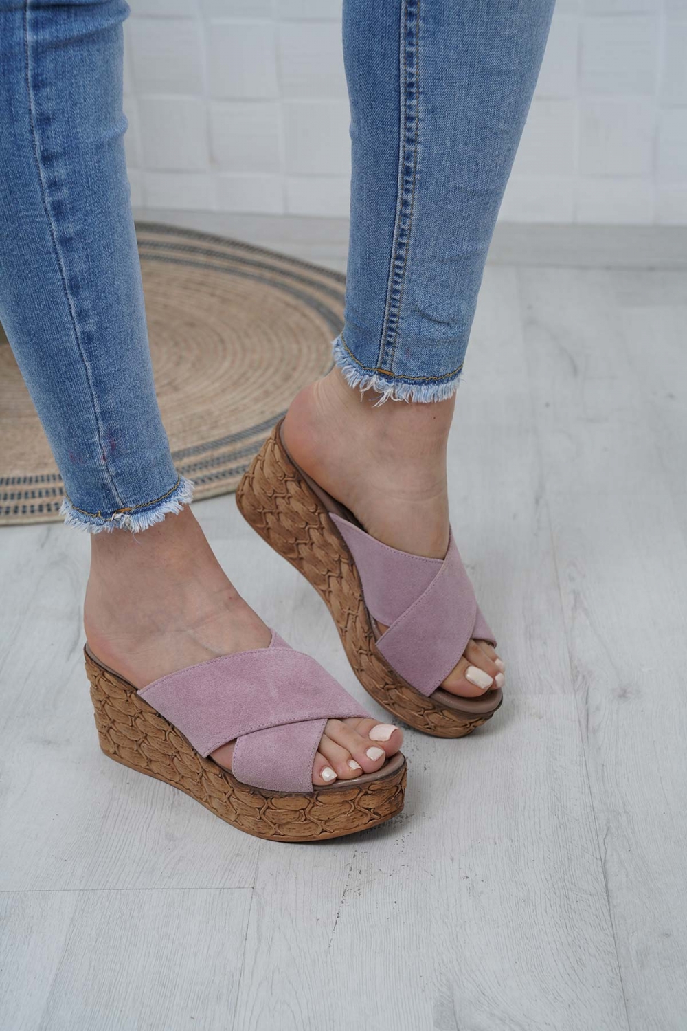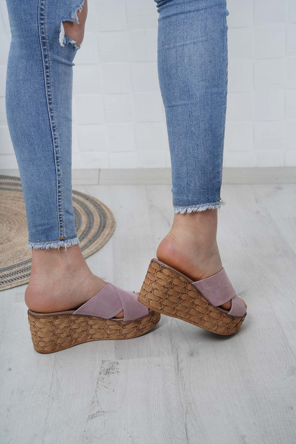 Hakiki Deri Pudra Kadın Dolgu Topuklu Terlik 261114602