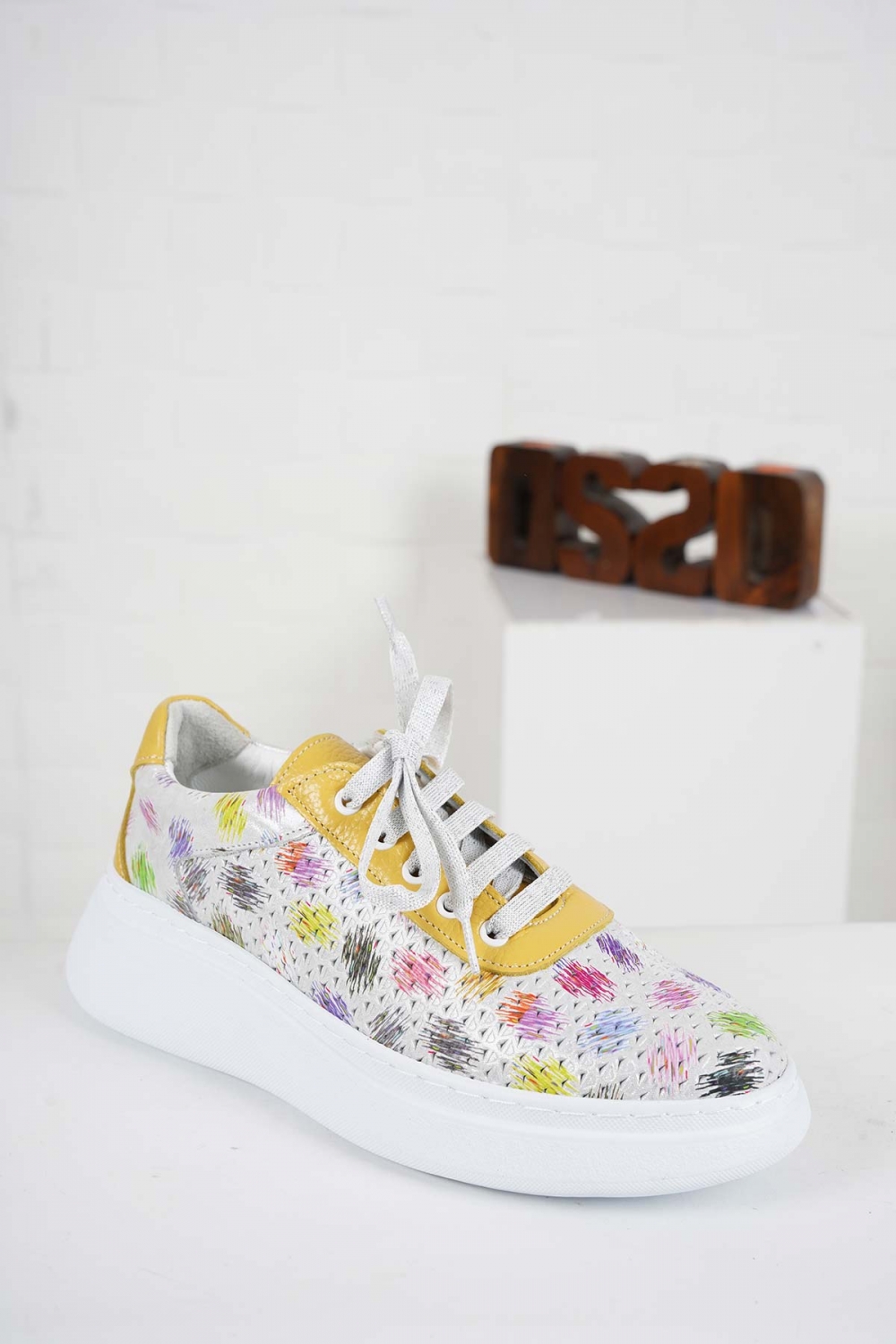 Hakiki Deri Renkli Beyaz Saten-Sarı Kadın Casual Ayakkabı 241186100
