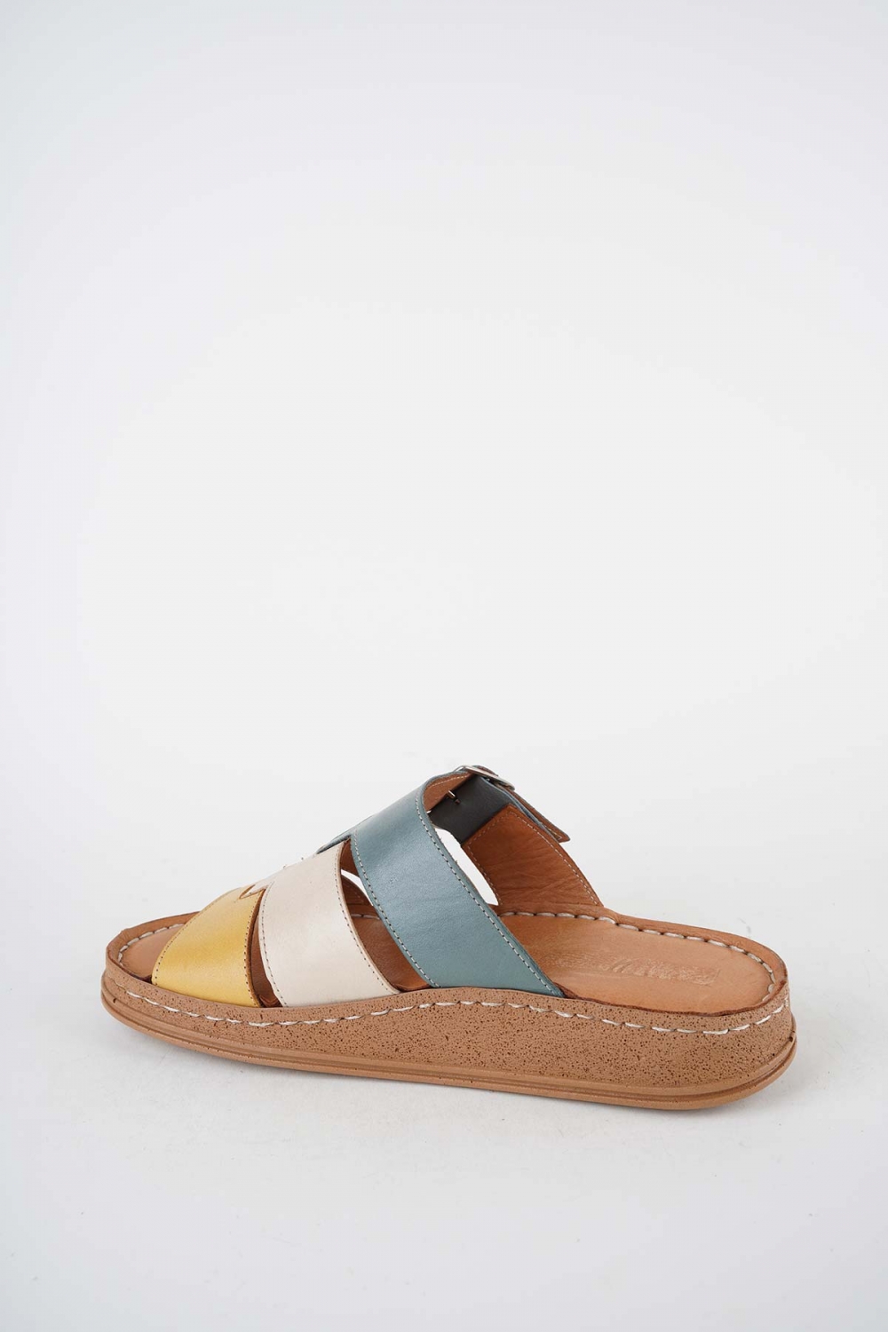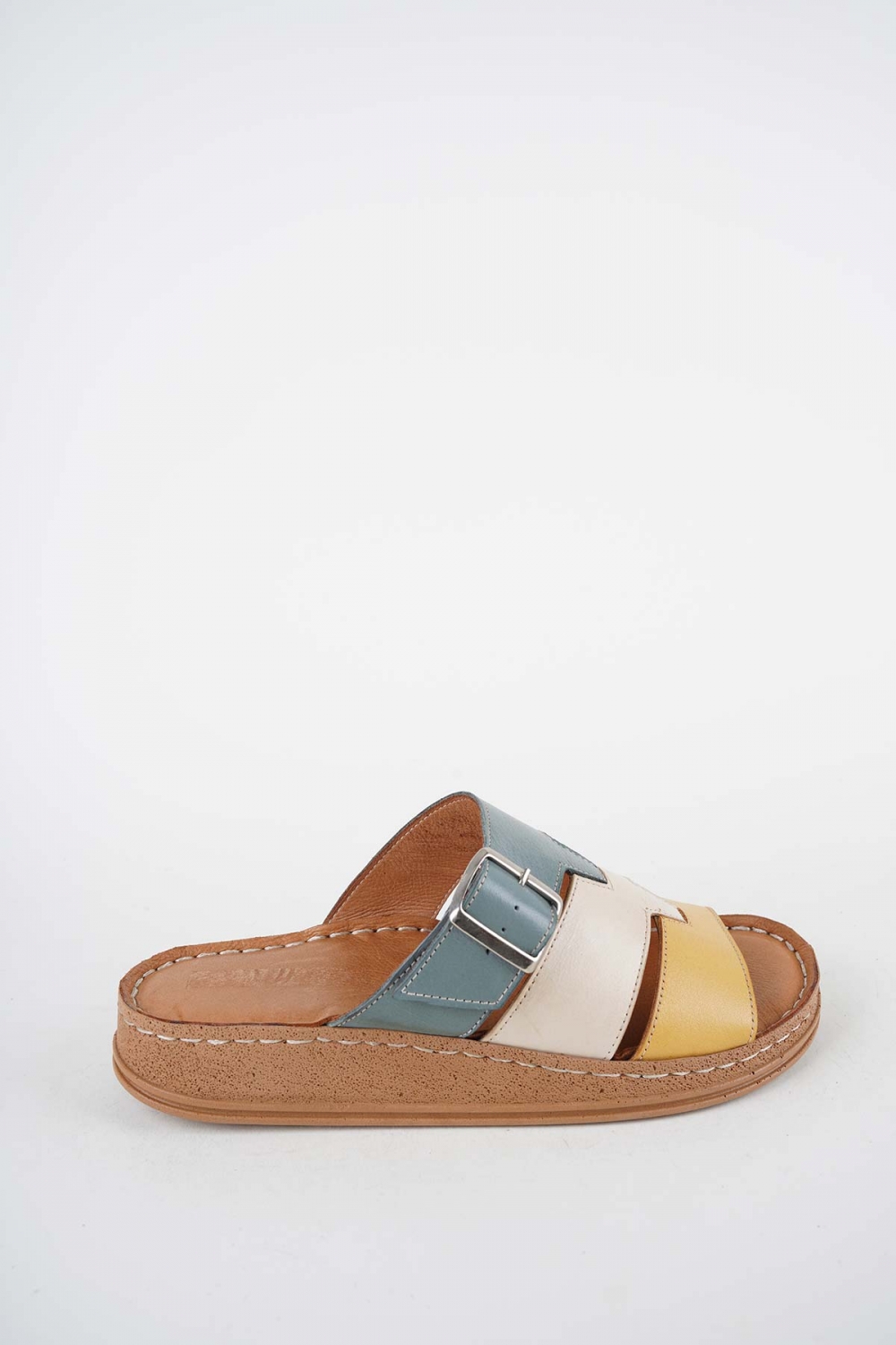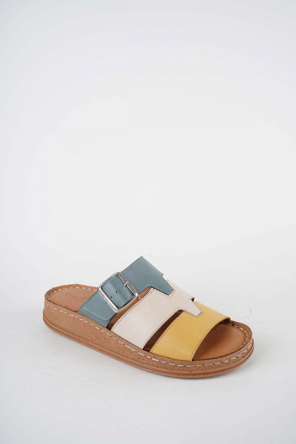 Hakiki Deri Sarı-Bej-Koyu Kot Kadın Comfort Terlik 261220604