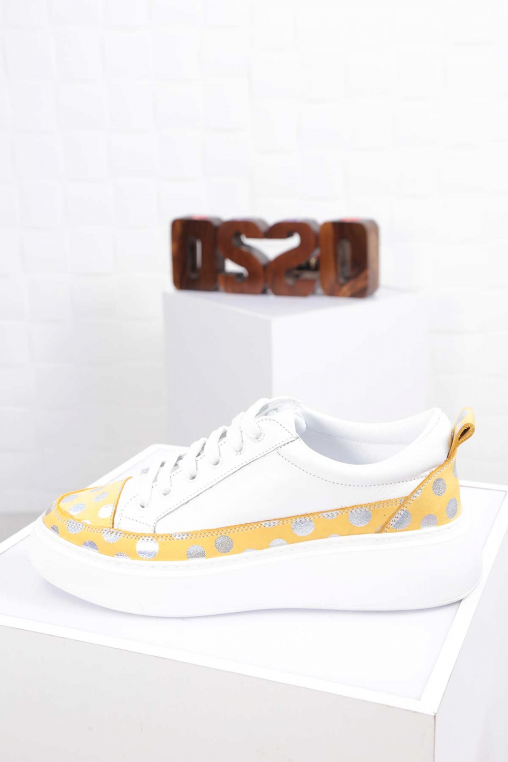 Hakiki Deri Sarı Beyaz Kadın Sneaker Ayakkabı 212220101