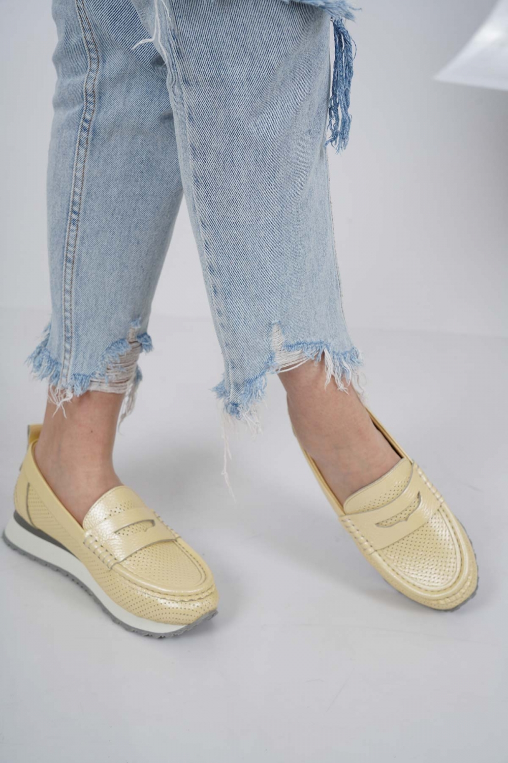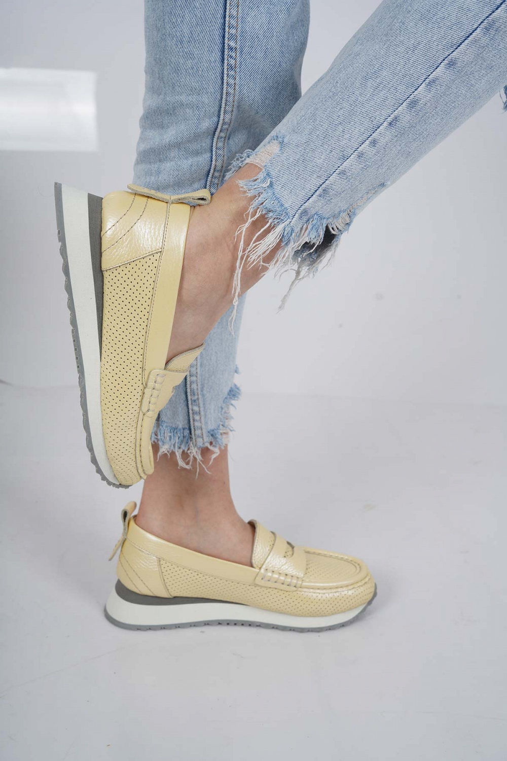 Hakiki Deri Sarı Floter Kadın Casual Ayakkabı 221126101