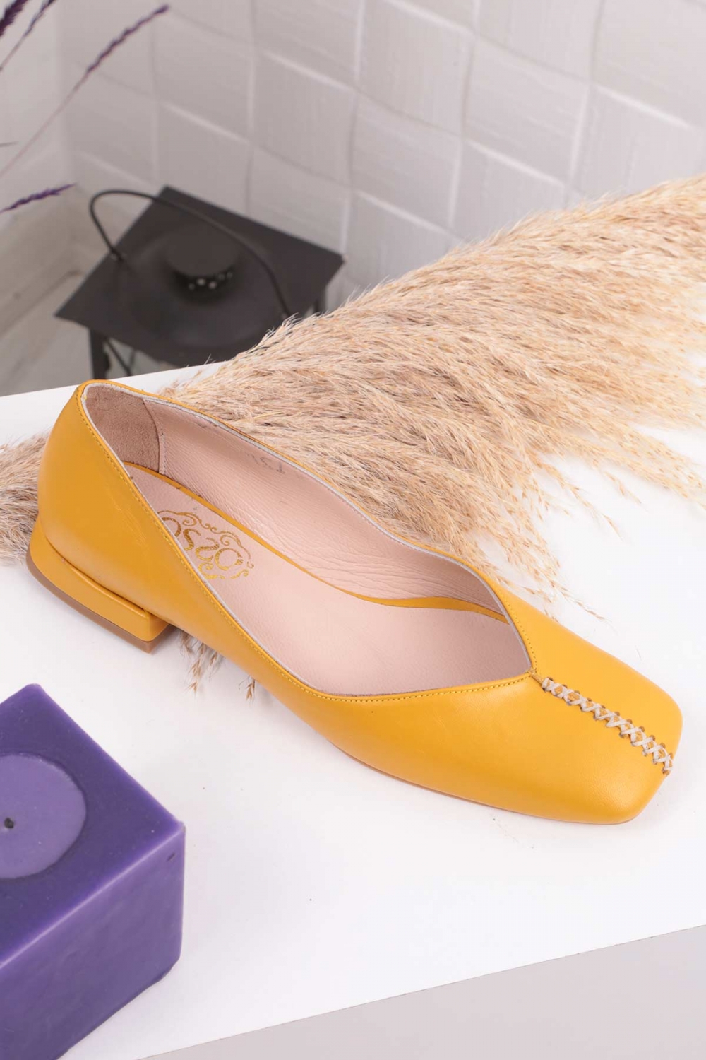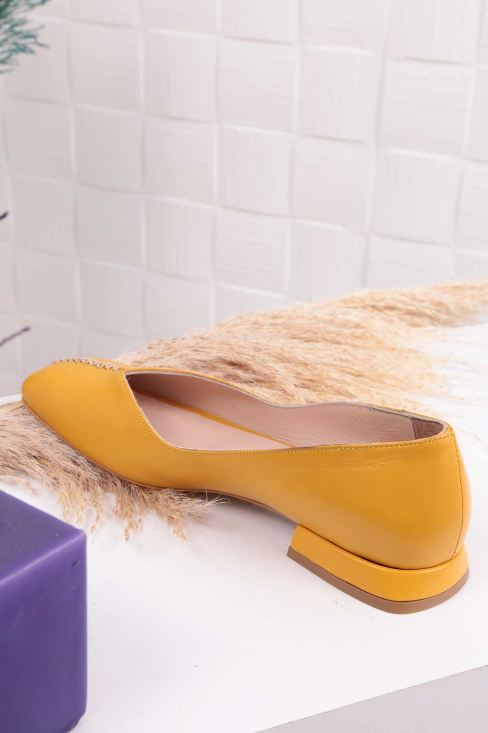 Hakiki Deri Sarı Kadın Babet Ayakkabı 211127111
