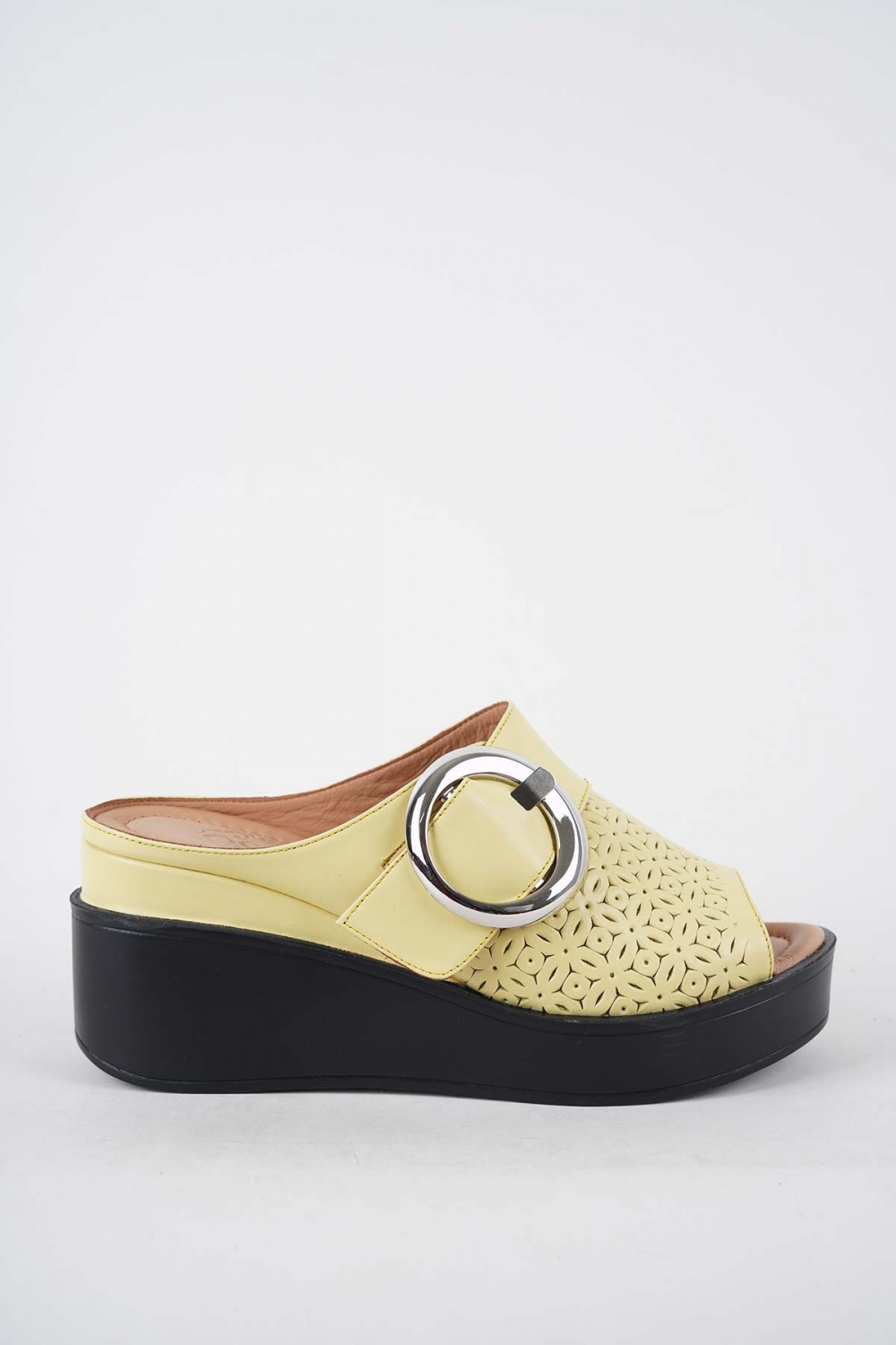 Hakiki Deri Sarı Kadın Dolgu Topuk Terlik 251229603