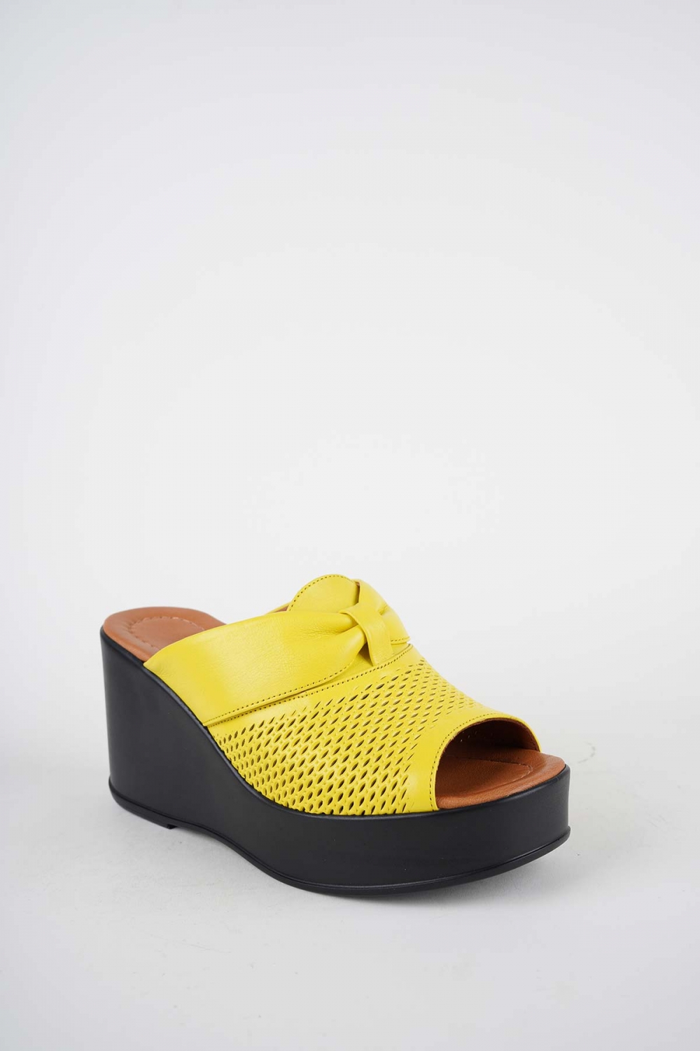 Hakiki Deri Sarı Kadın Dolgu Topuklu Terlik 261229604