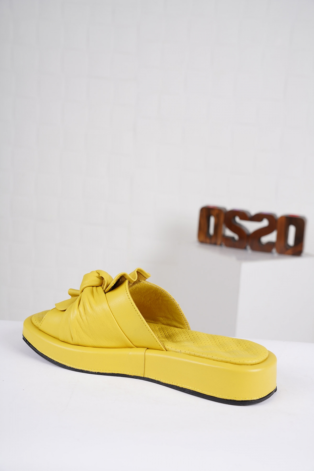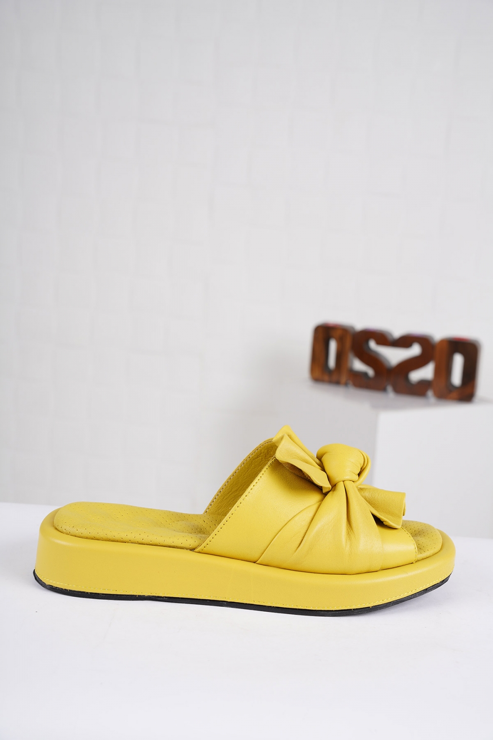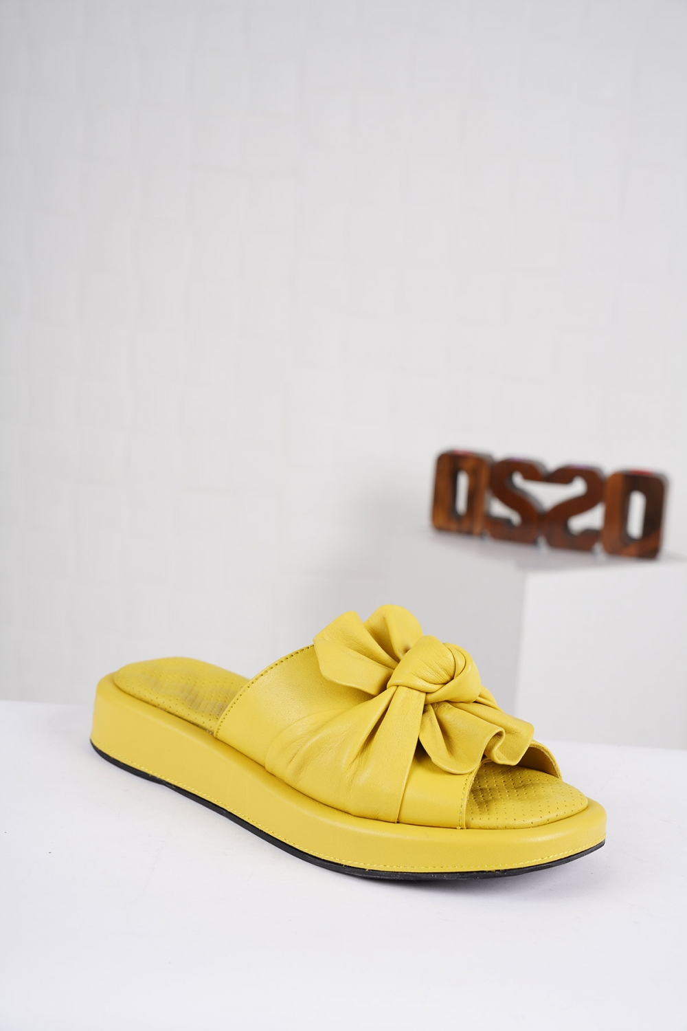 Hakiki Deri Sarı Kadın Düz Terlik 221229602