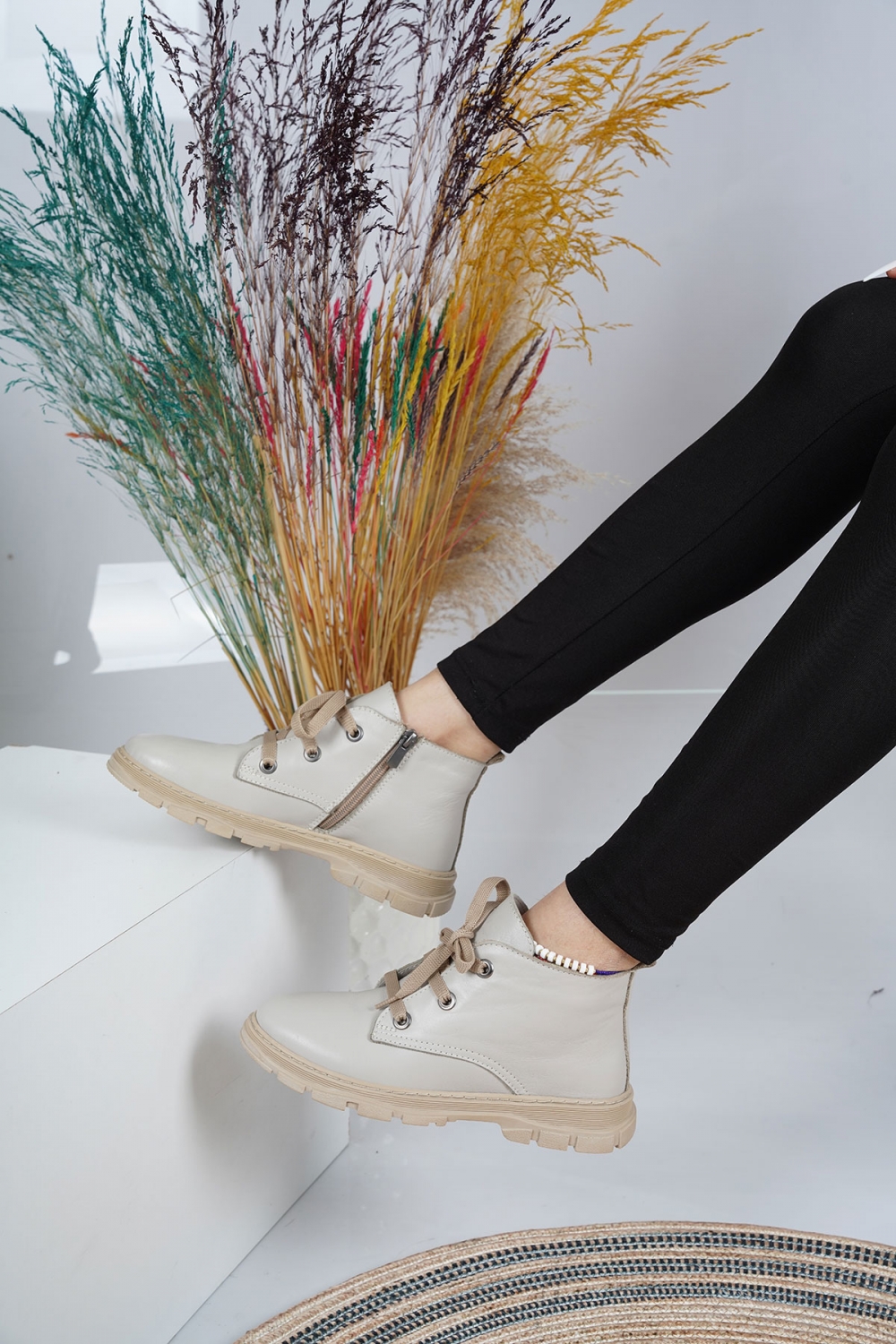Hakiki Deri Çiçek Baskılı Kadın Casual Bot 252186208