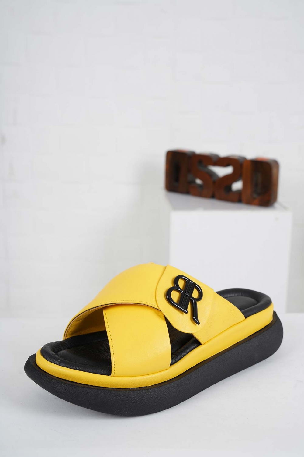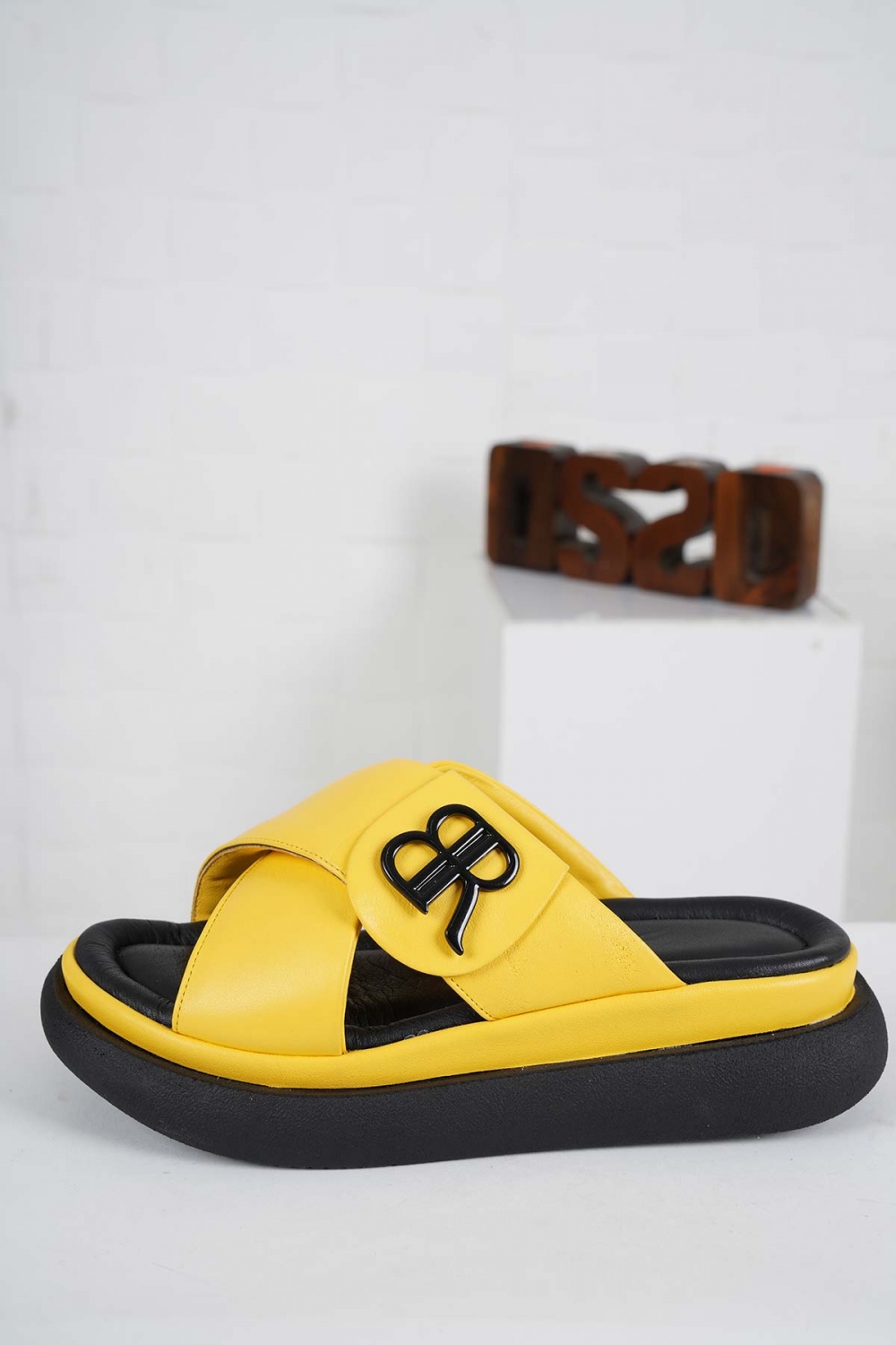 Hakiki Deri Sarı Kadın Komfort Terlik 241229605