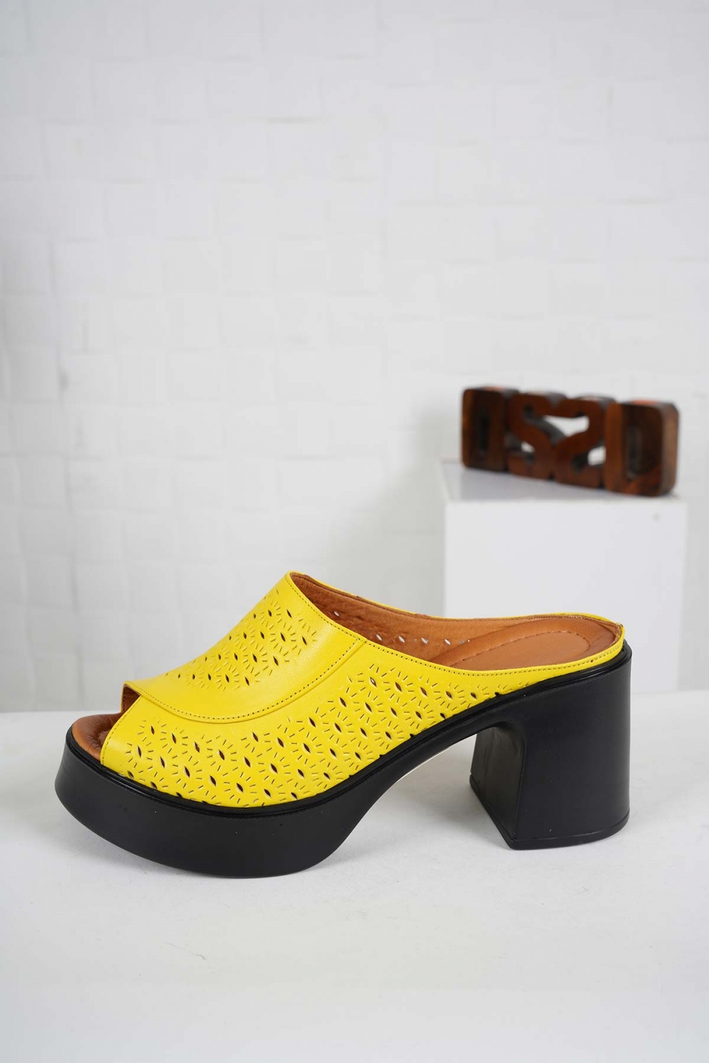 Hakiki Deri Sarı Kadın Topuklu Terlik 241229607
