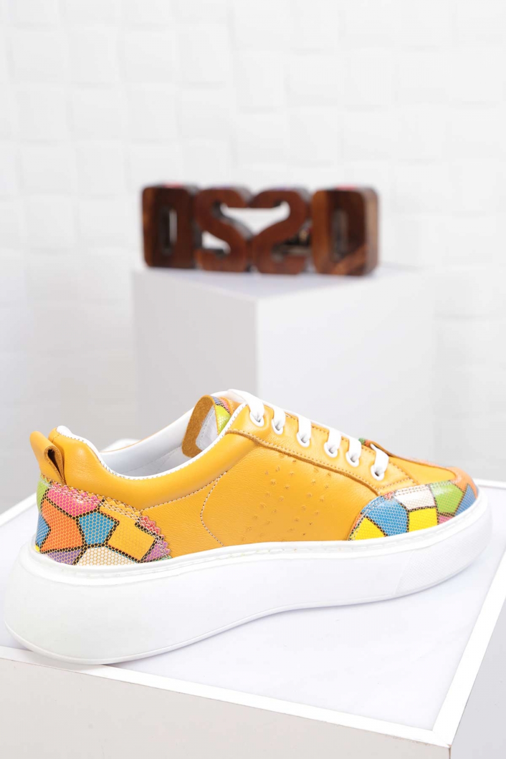 Hakiki Deri Sarı Multi Kadın Sneaker Ayakkabı 212220103