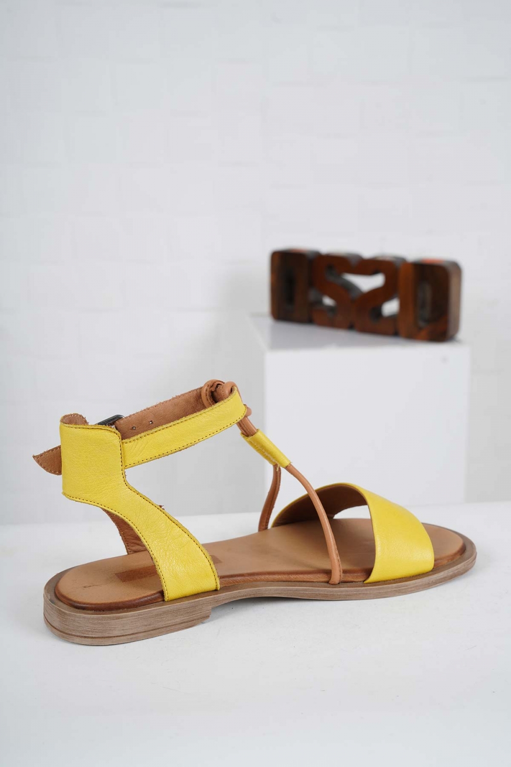 Hakiki Deri Sarı-Taba Kadın Düz Sandalet 241126528