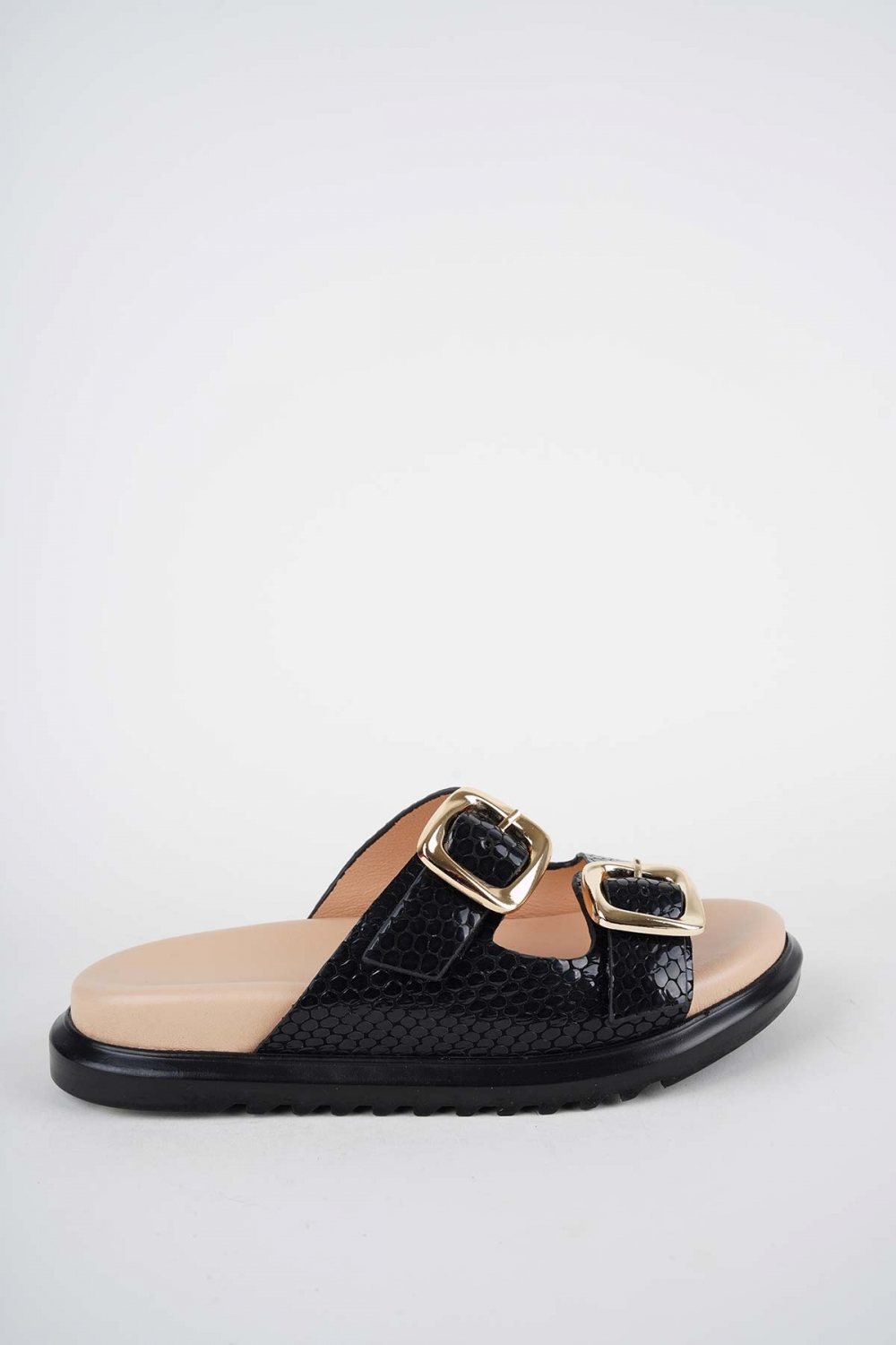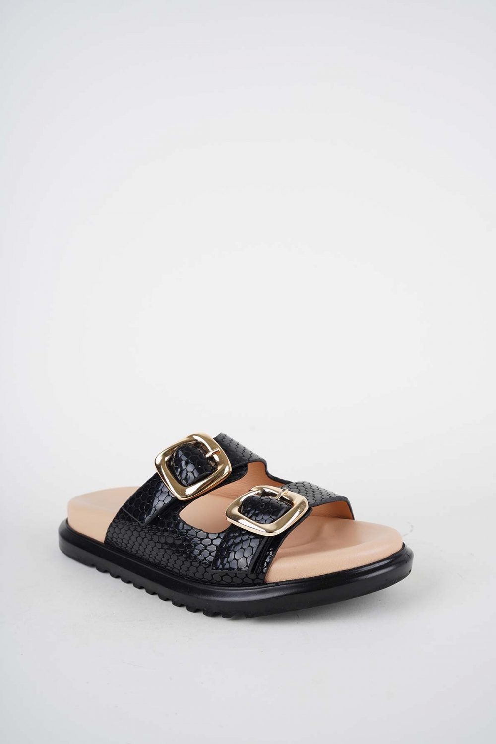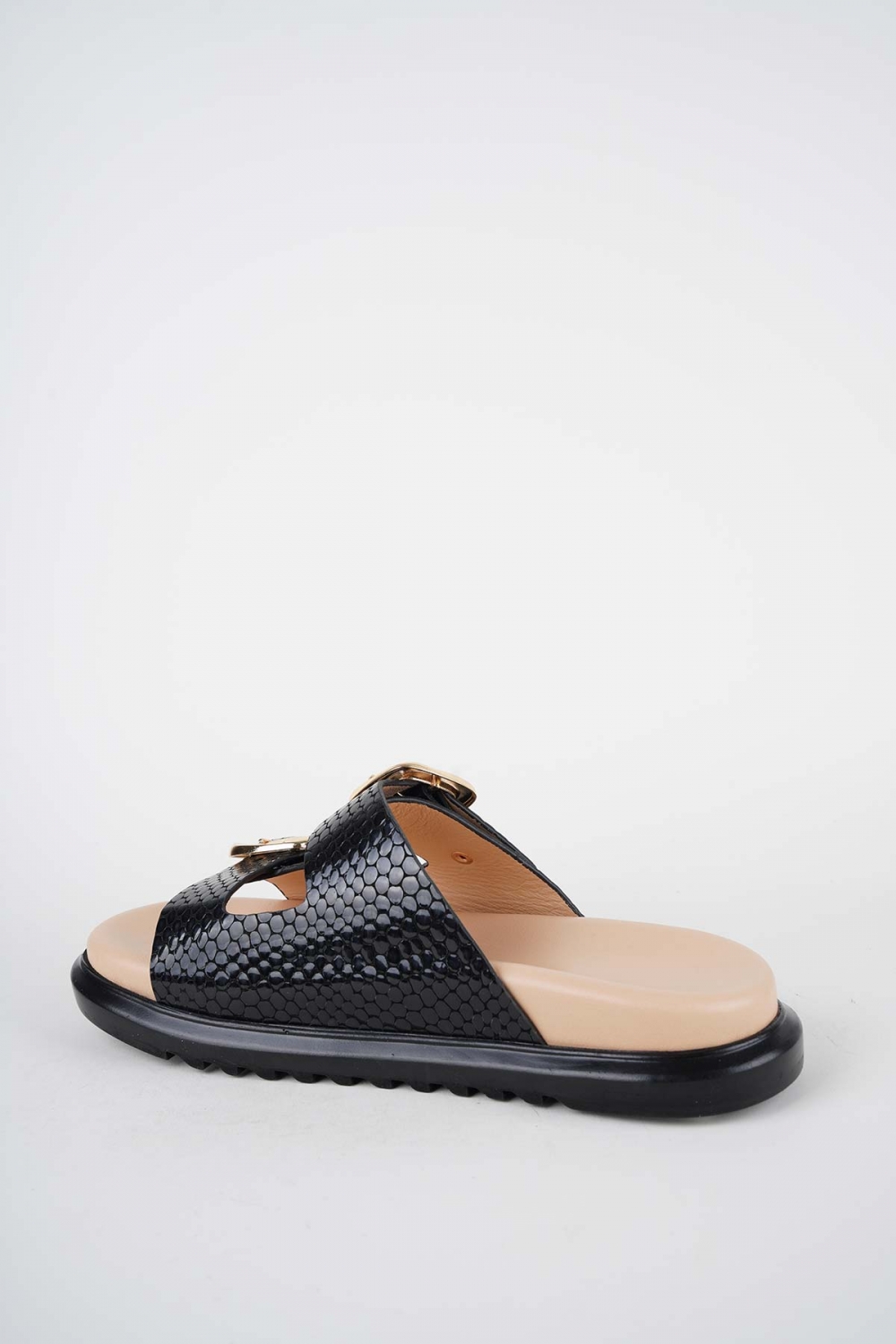 Hakiki Deri Siyah Baskı Kadın Düz Terlik 261162605