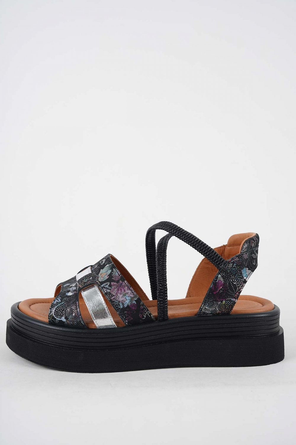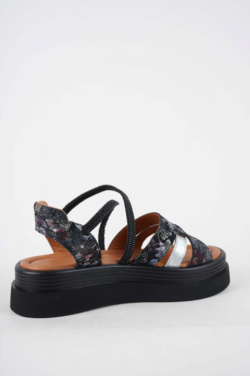 Hakiki Deri Siyah Baskılı-Gümüş Kadın Dolgu Topuklu Sandalet 251186509