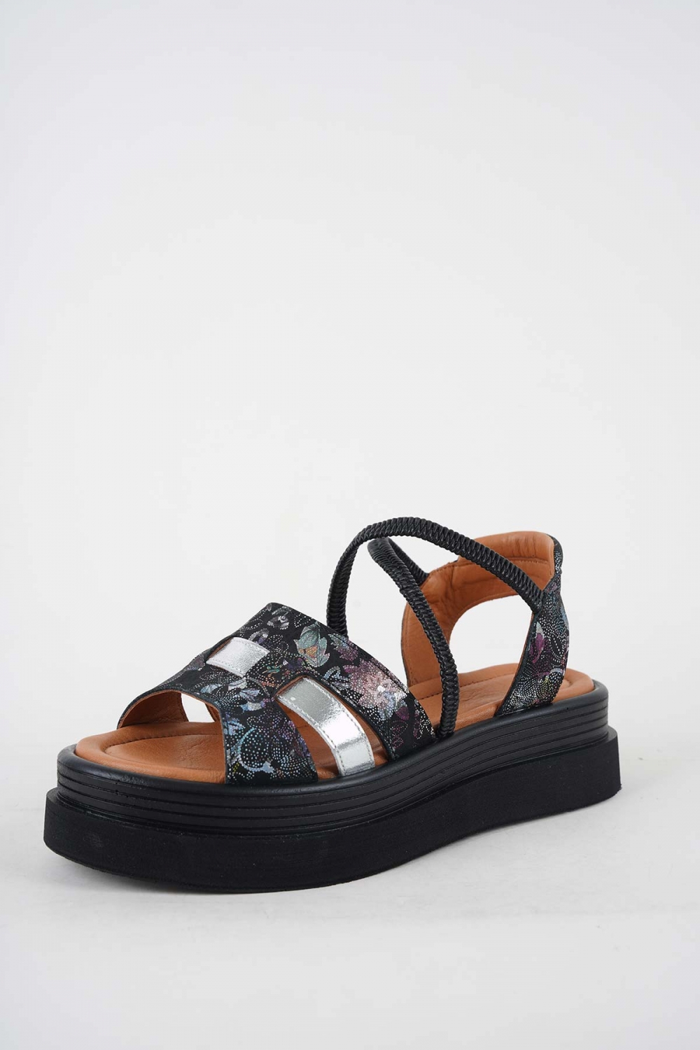 Hakiki Deri Siyah Baskılı-Gümüş Kadın Dolgu Topuklu Sandalet 251186509