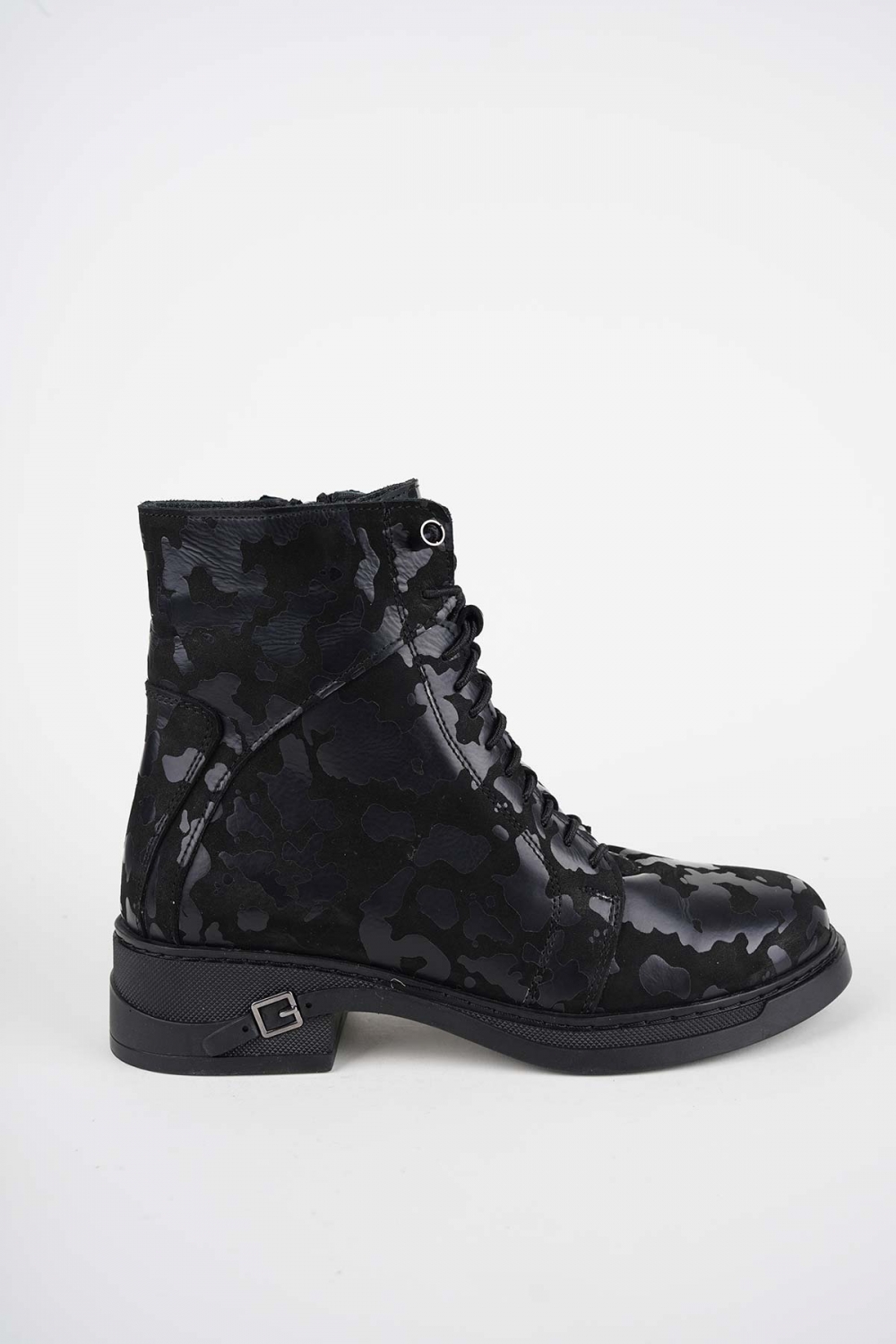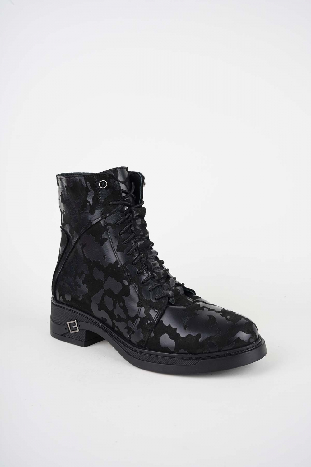 Hakiki Deri Siyah Baskılı Kadın Casual Bot 252136213