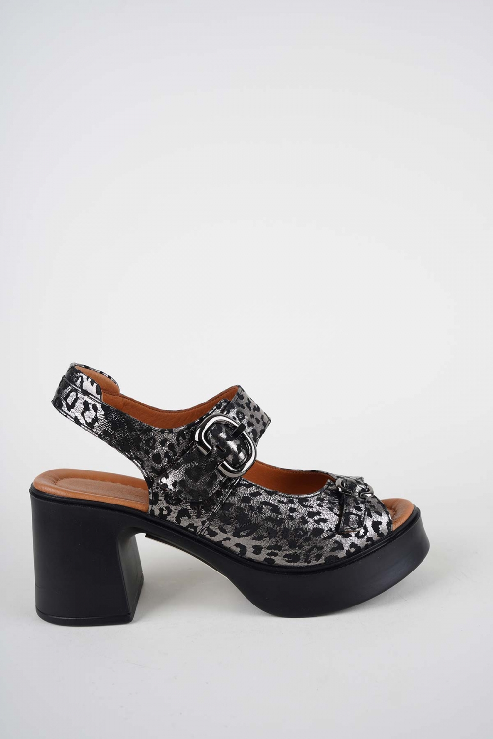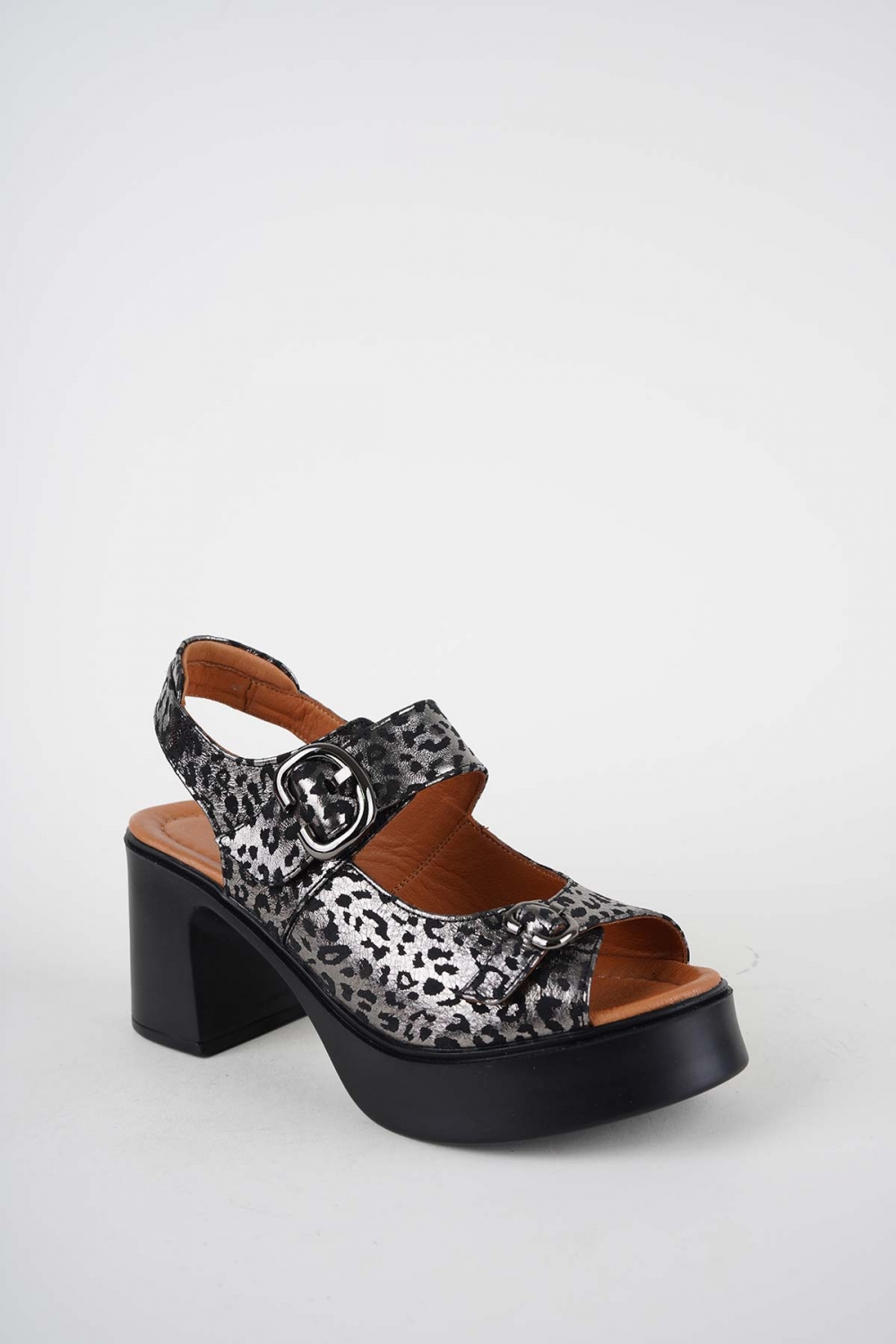 Hakiki Deri Siyah Baskılı Kadın Topuklu Sandalet 261229506