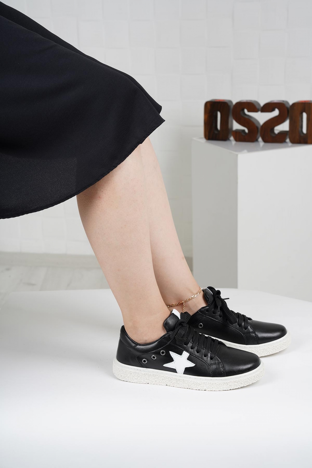 Hakiki Deri Siyah Kadın Sneaker Ayakkabı 252114101
