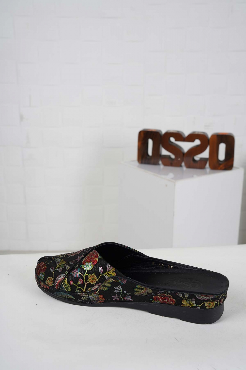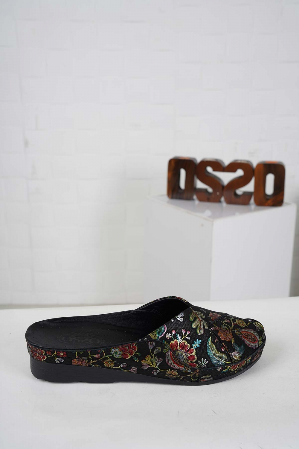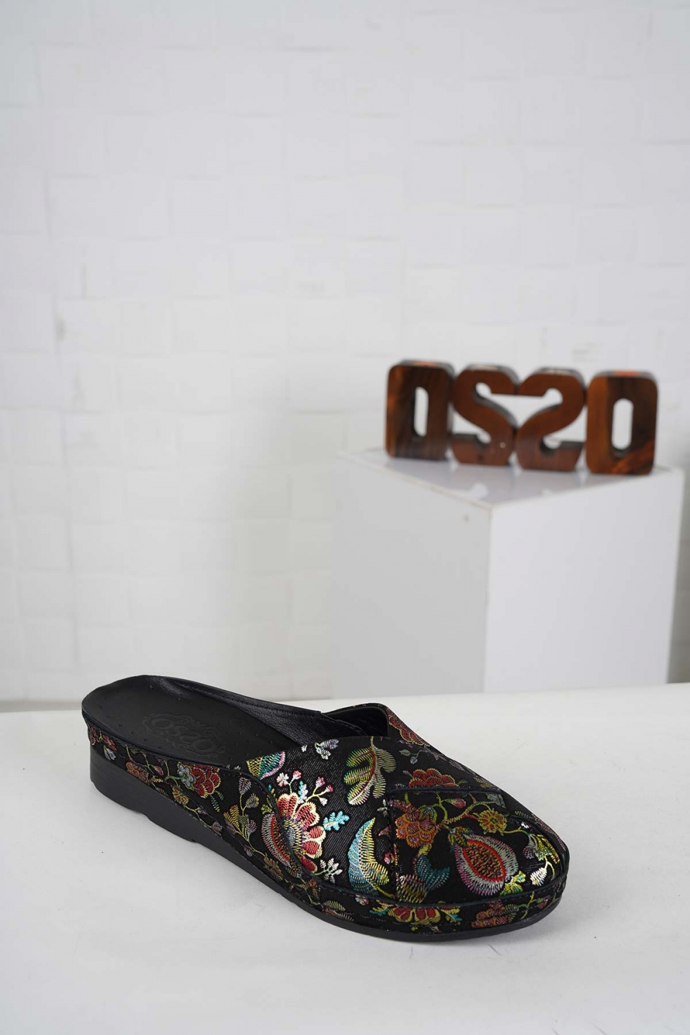 Hakiki Deri Siyah Çiçekli Baskı Kadın Comfort Sabo 242177704