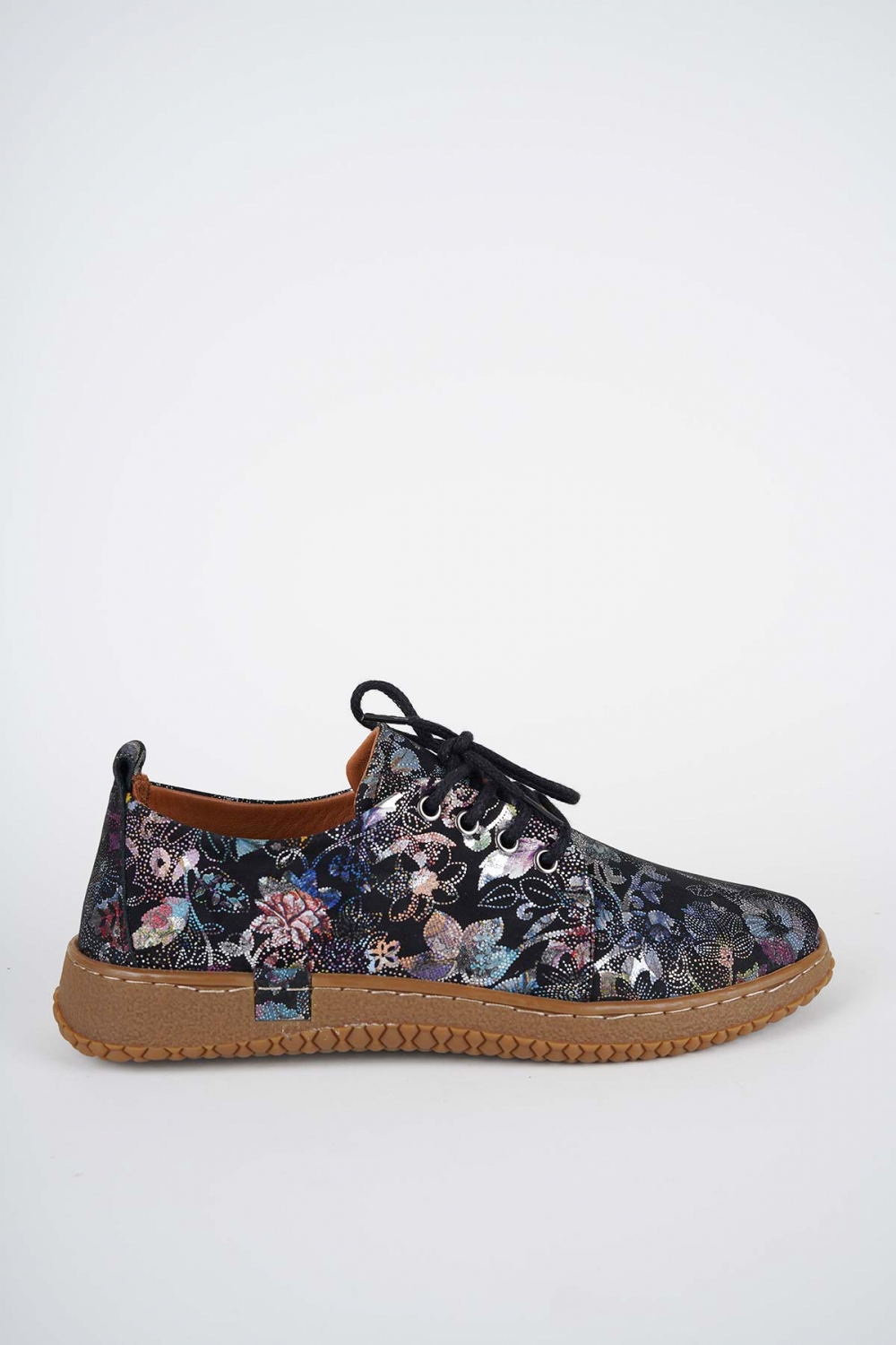 Hakiki Deri Siyah Çiçekli Kadın Casual Ayakkabı 252186103