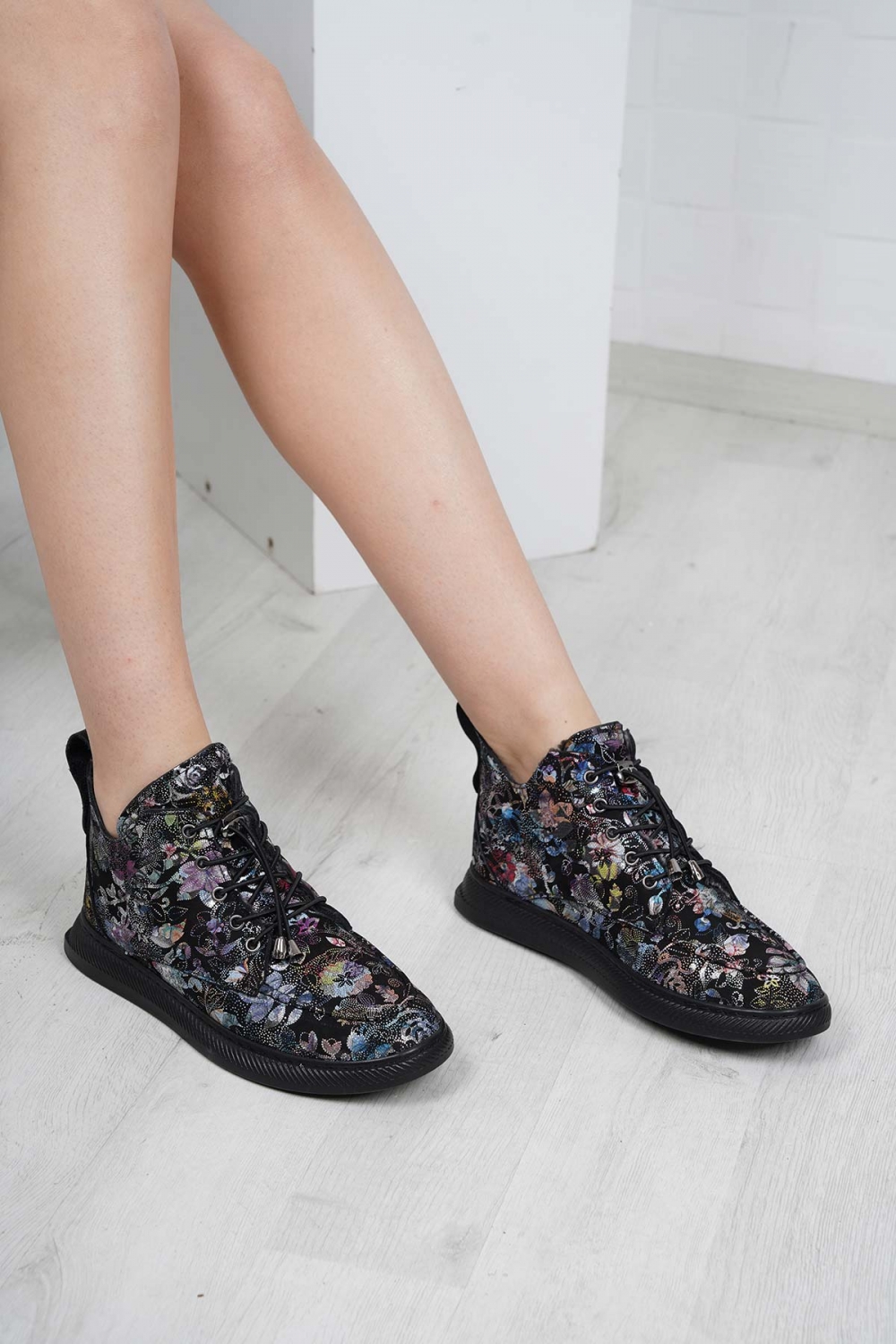 Hakiki Deri Siyah Çiçekli Kadın Casual Bot 232186202