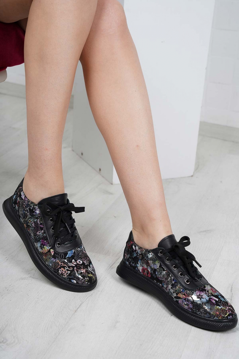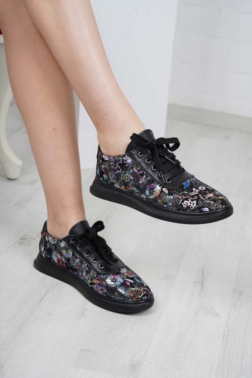 Hakiki Deri Siyah Çiçekli-Siyah Kadın Casual Ayakkabı 232186100