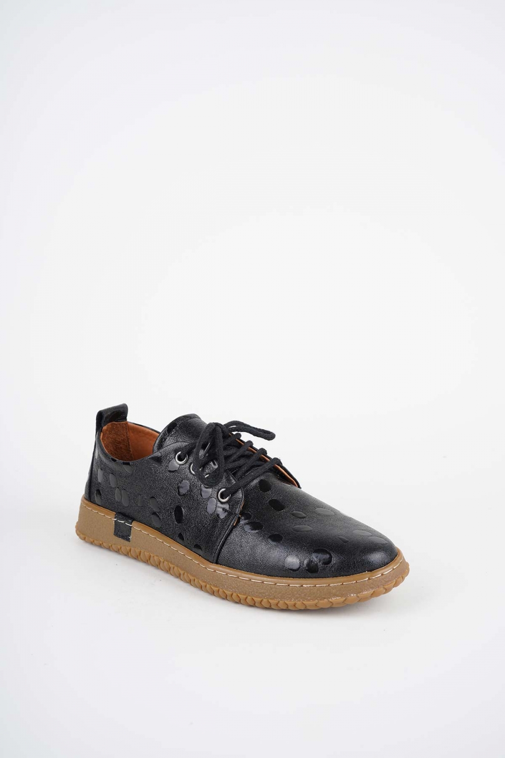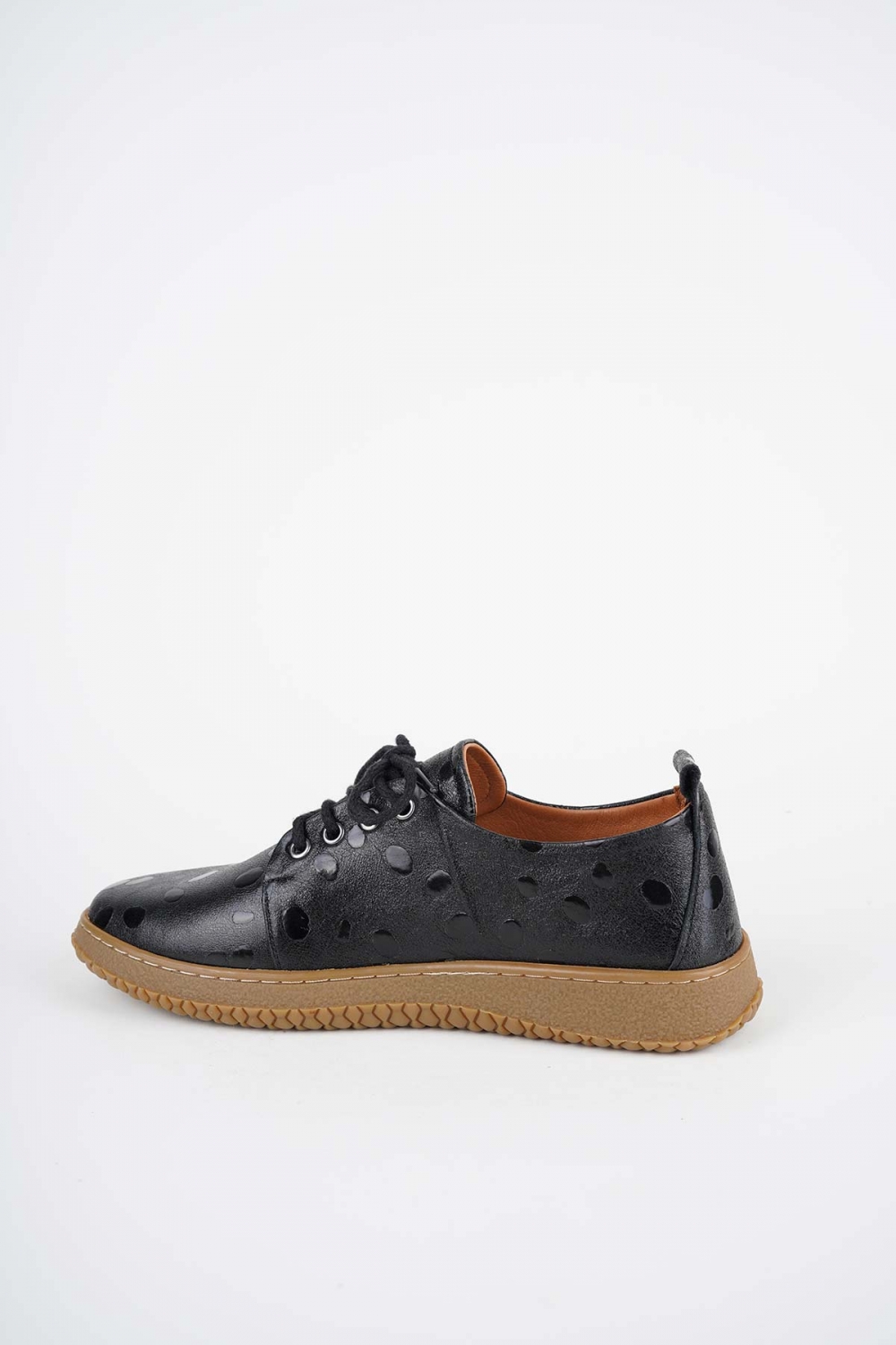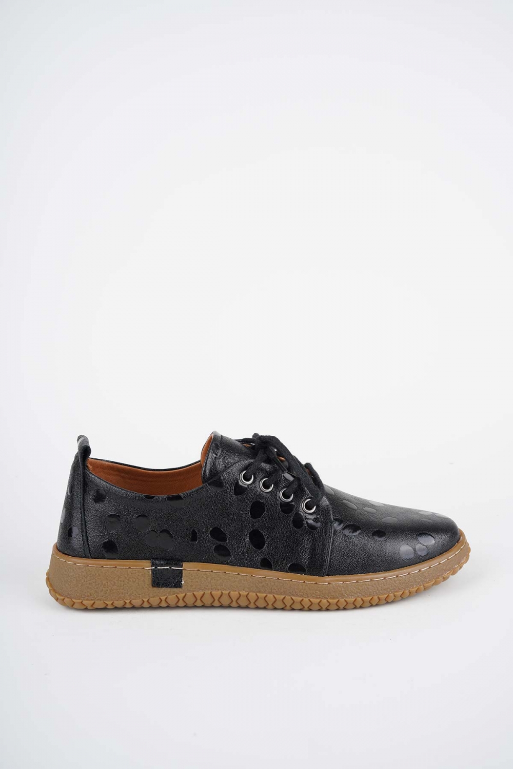 Hakiki Deri Siyah Damla Baskılı Kadın Casual Ayakkabı 252186103