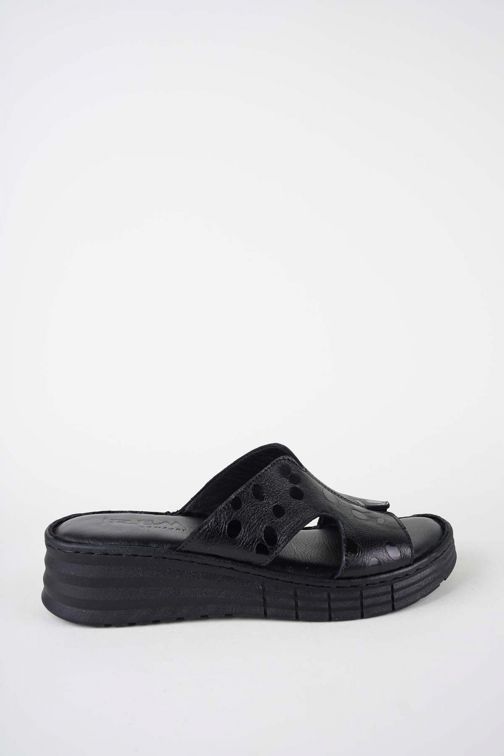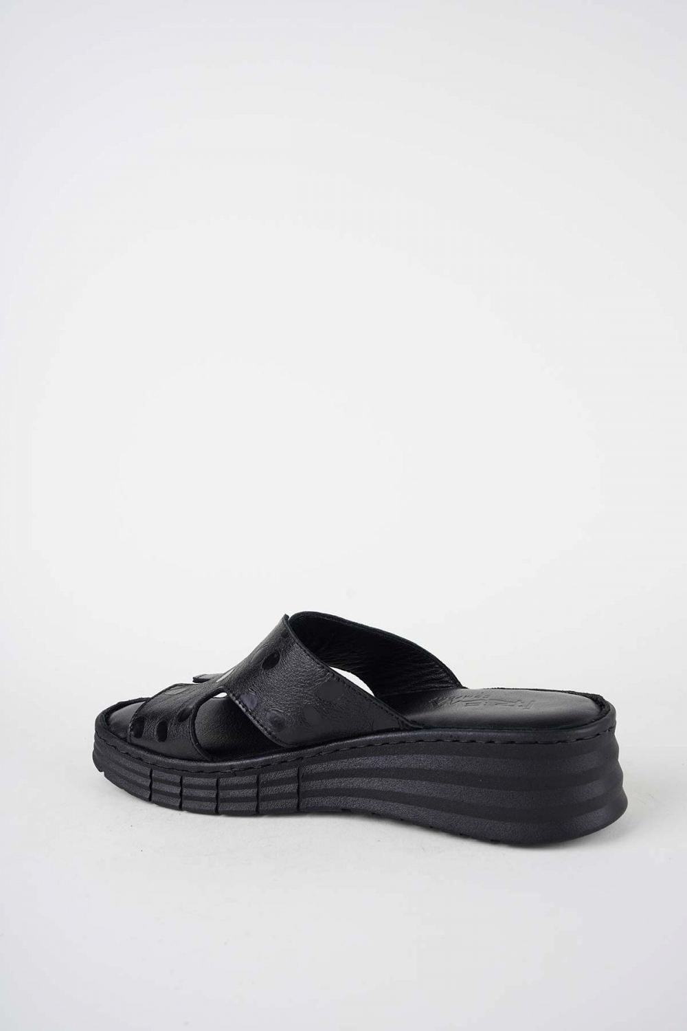 Hakiki Deri Siyah Fasulye Baskı Kadın Dolgu Topuklu Terlik 261245605