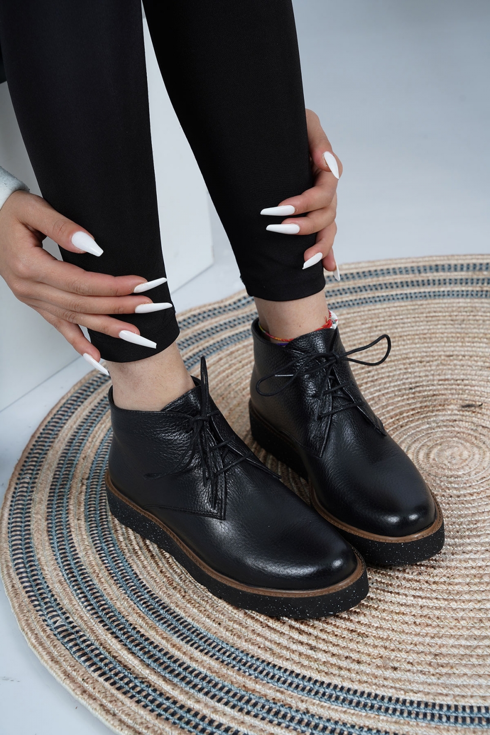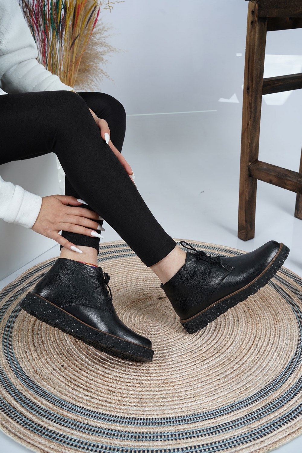 Hakiki Deri Siyah Floter Kadın Kısa Bot 202110219