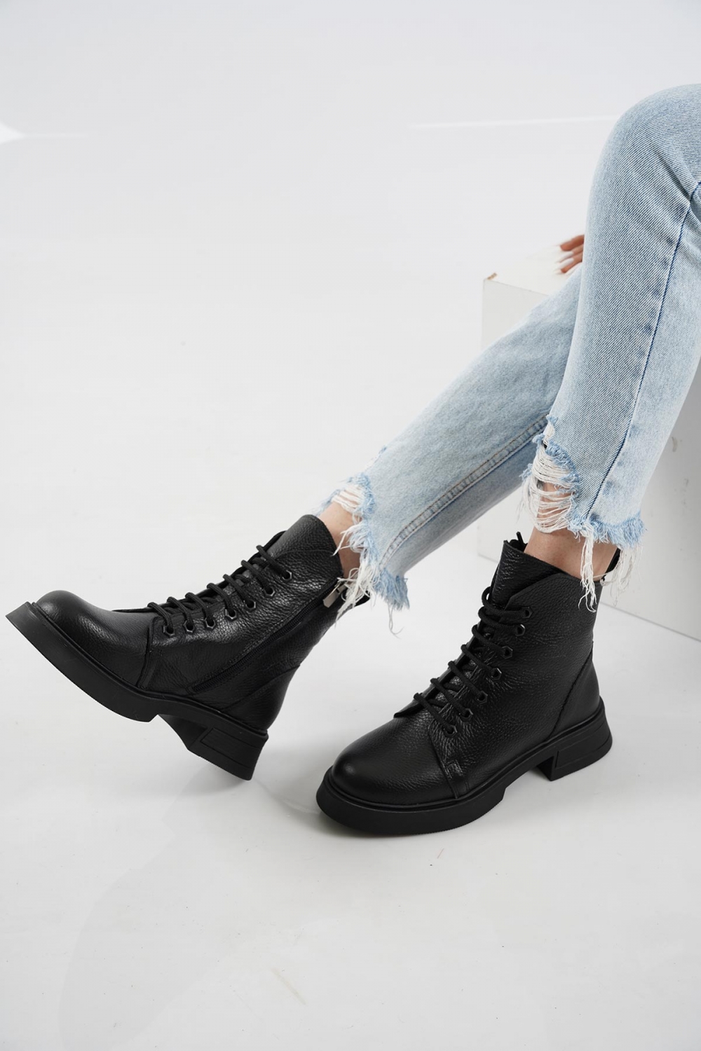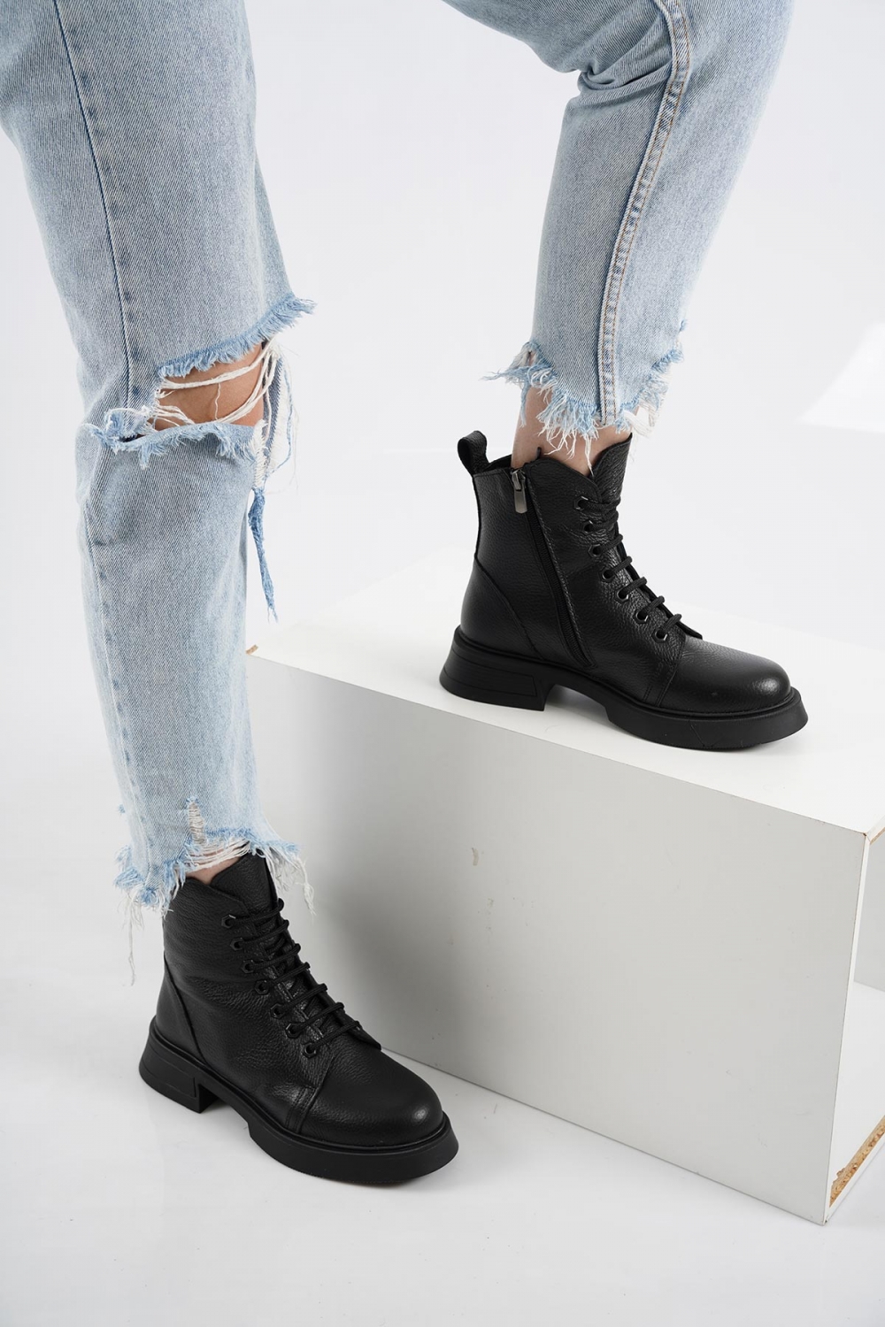 Hakiki Deri Siyah Kadın Kısa Bot 242127206