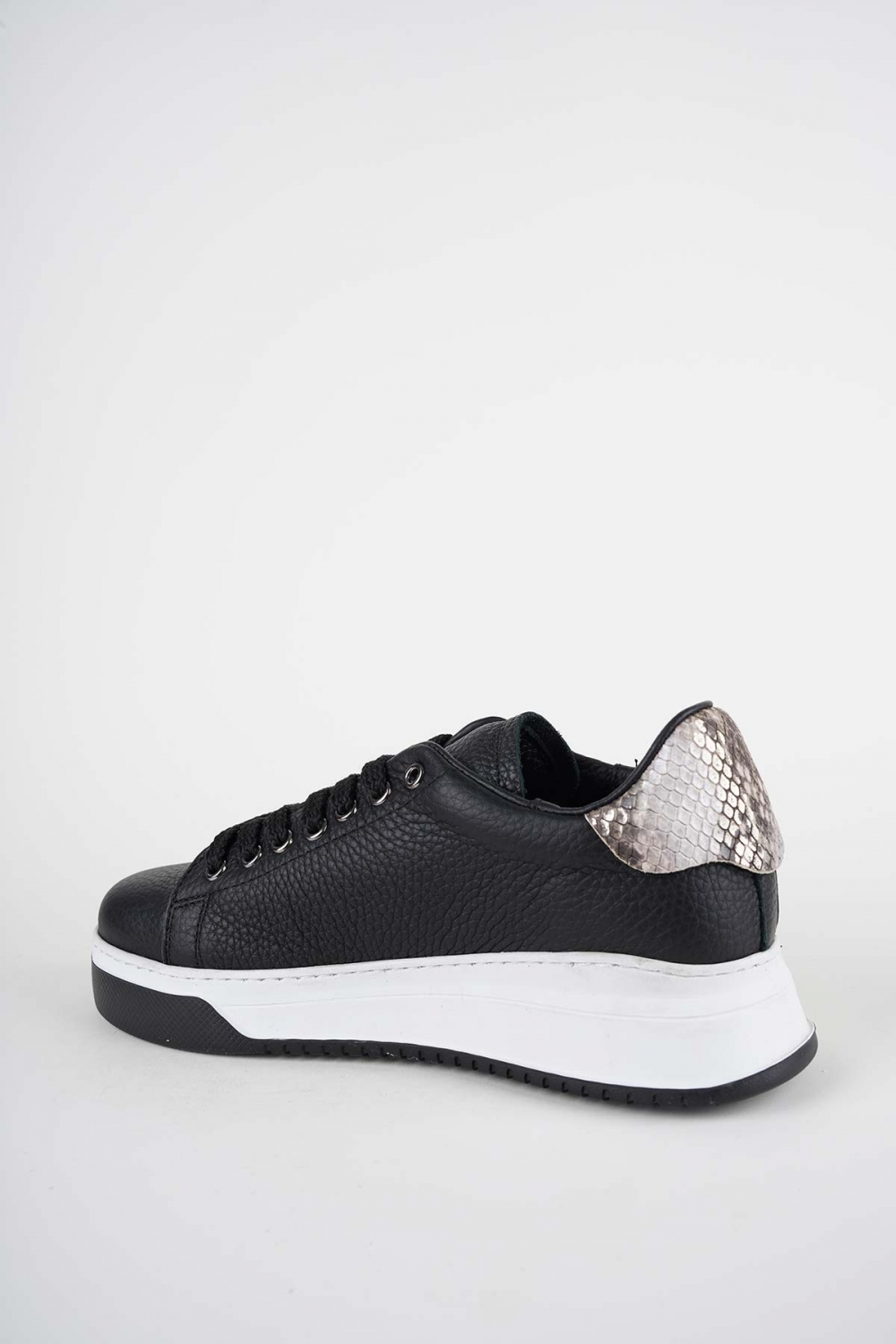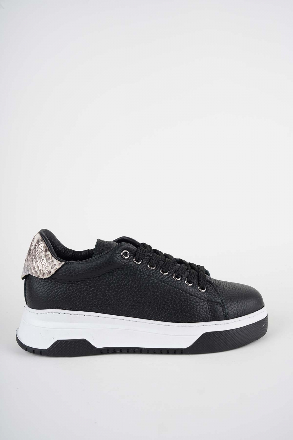 Hakiki Deri Siyah Flt.-Yılan Baskı Kadın Sneaker Ayakkabı 252114100