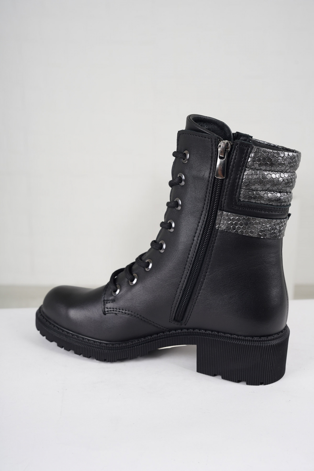 Hakiki Deri Siyah-Gri Petek Kadın Kısa Bot 222176203