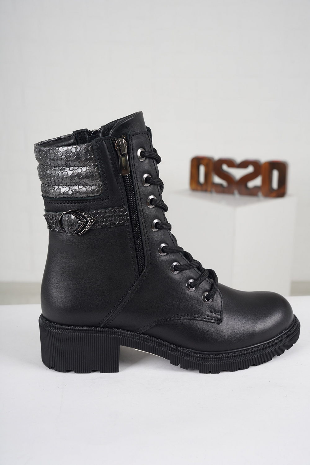 Hakiki Deri Siyah Baskılı Kadın Casual Bot 252136213