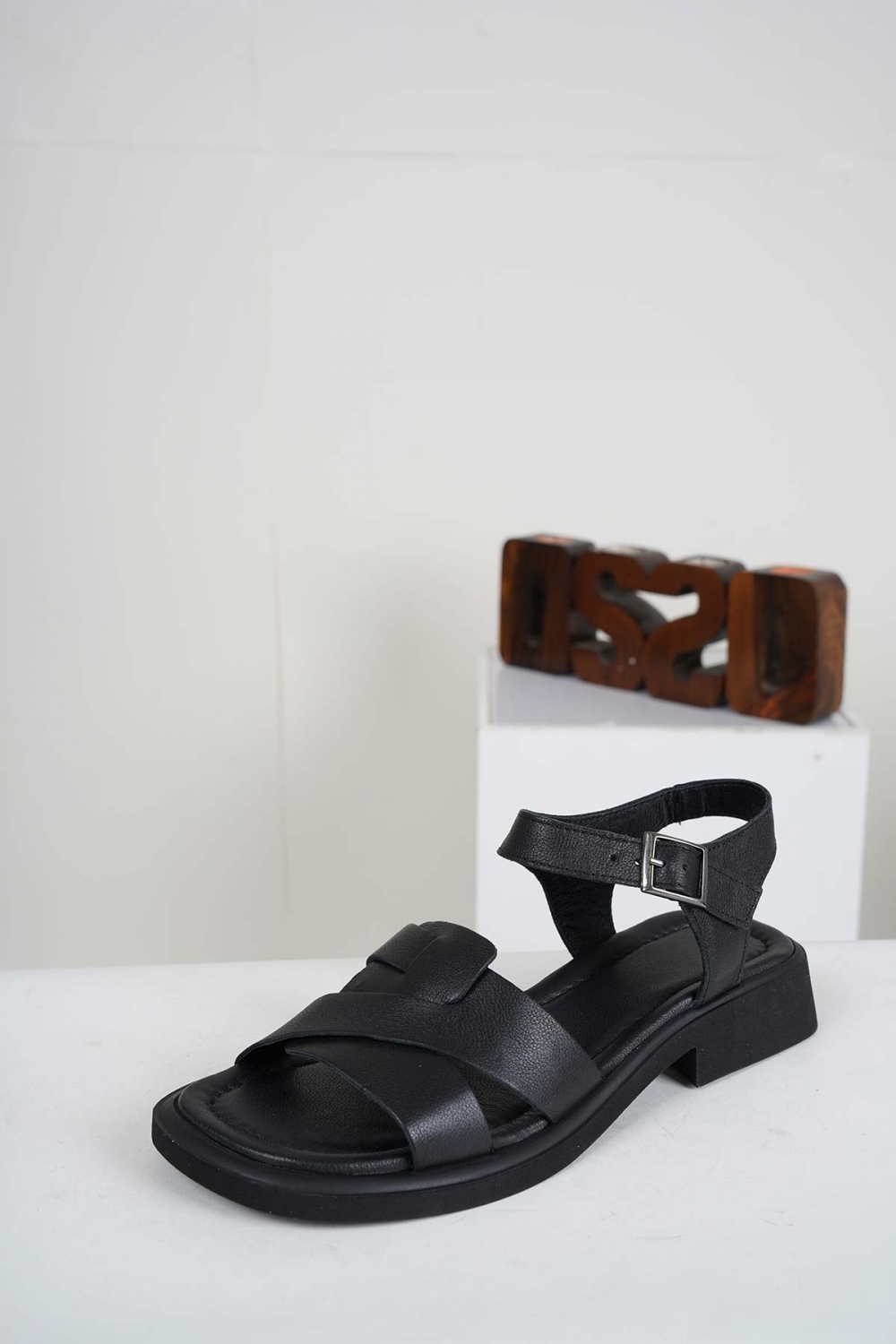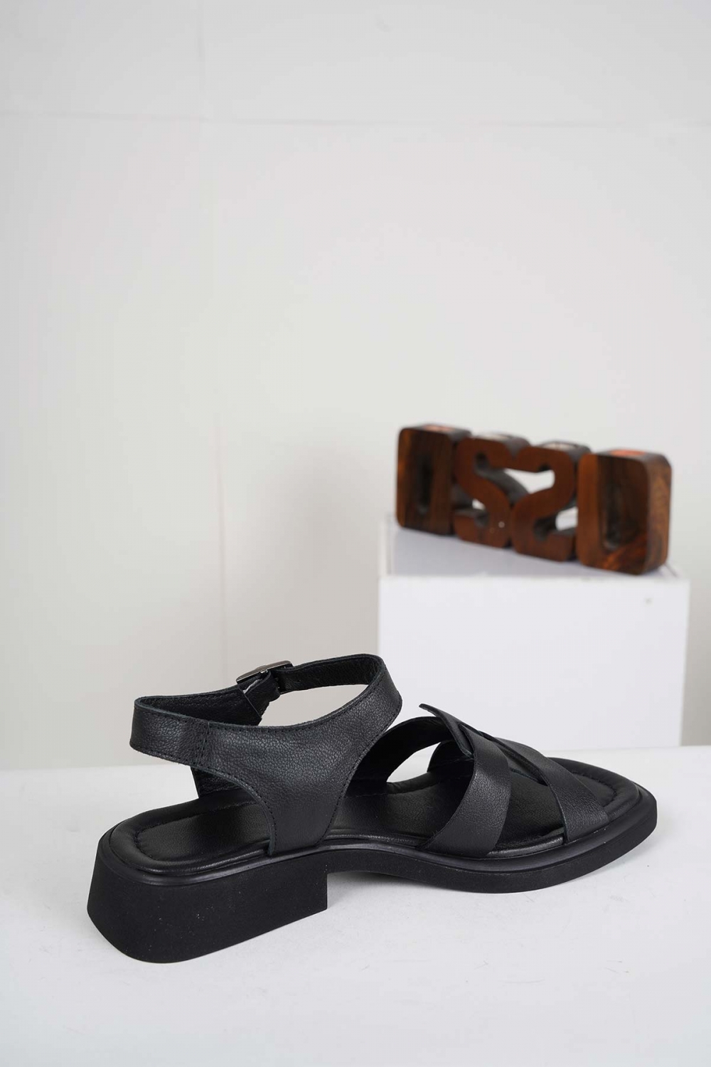 Hakiki Deri Siyah Kadın Alçak Topuklu Sandalet 241225503
