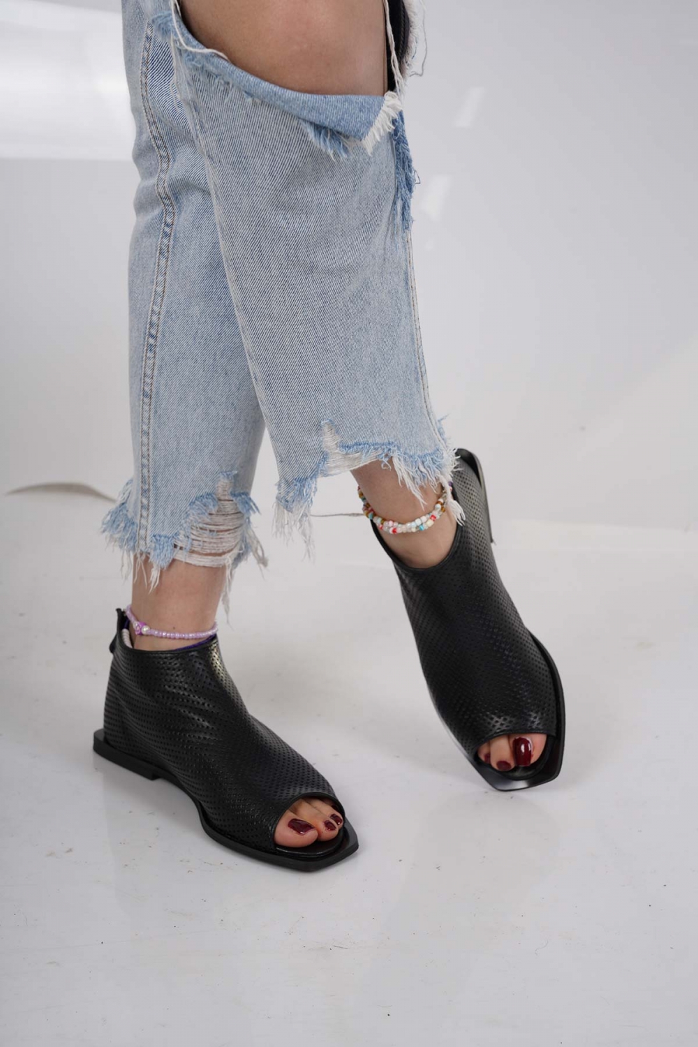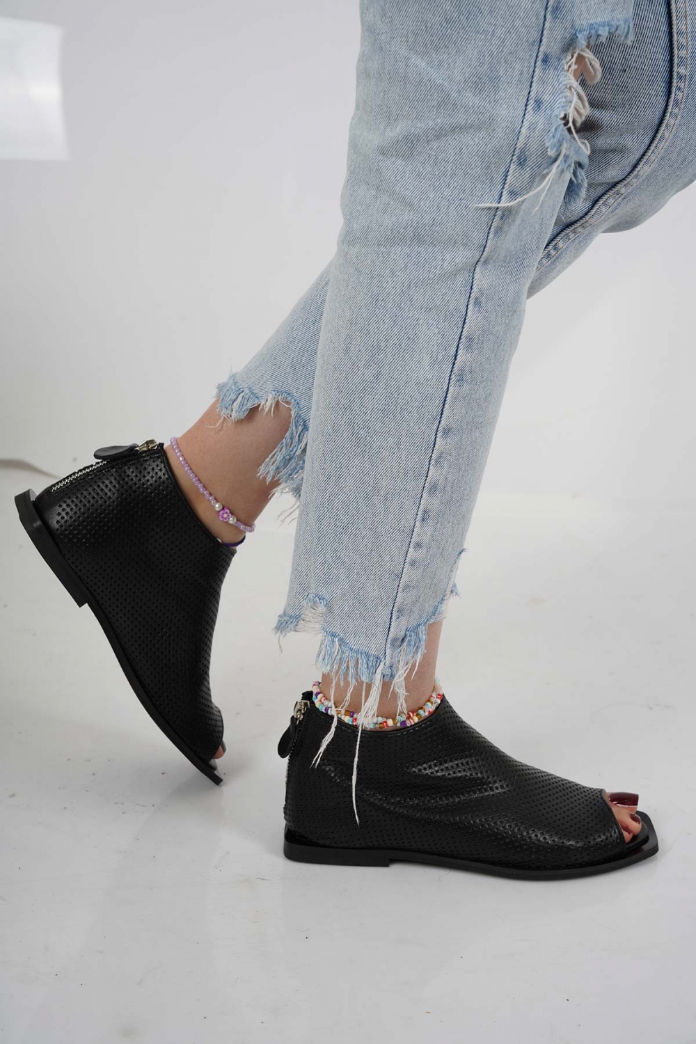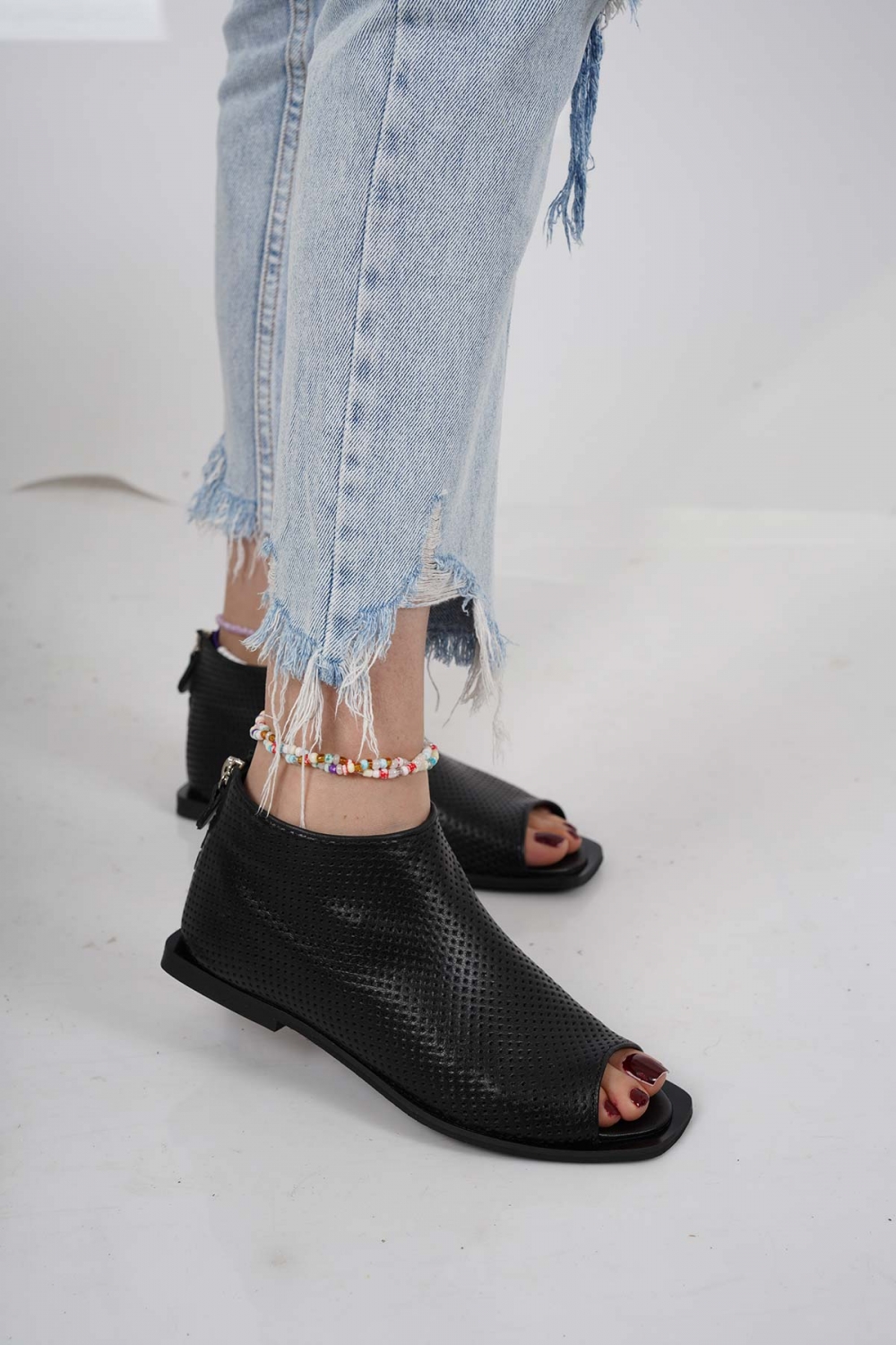 Hakiki Deri Siyah Kadın Burnu Açık Bot 221110201